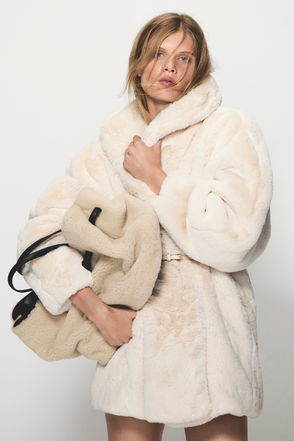 The Soprano jacket by Staud will become a cold-weather favorite among fashion insiders. Made from plush material, the white piece features a notch collar and a boxy silhouette.