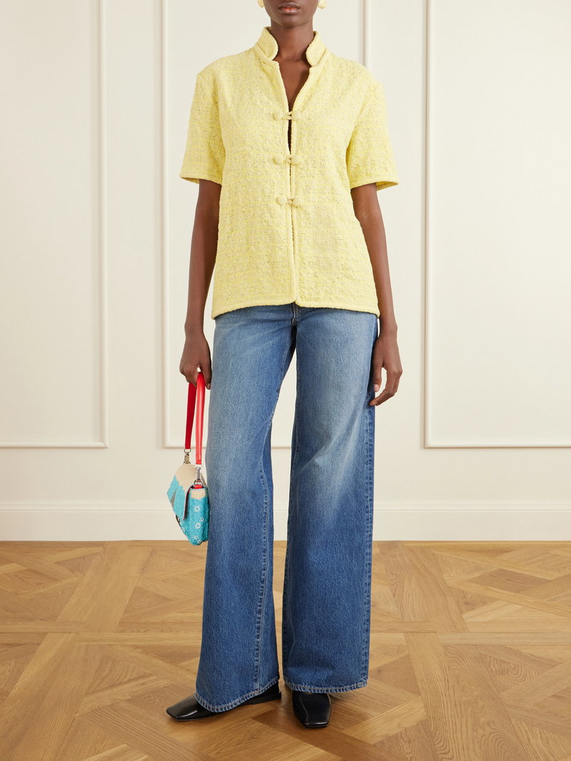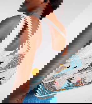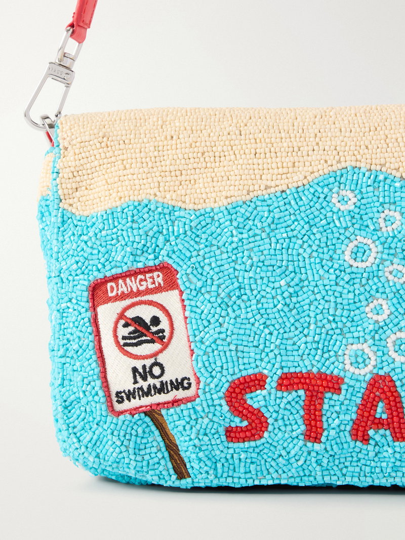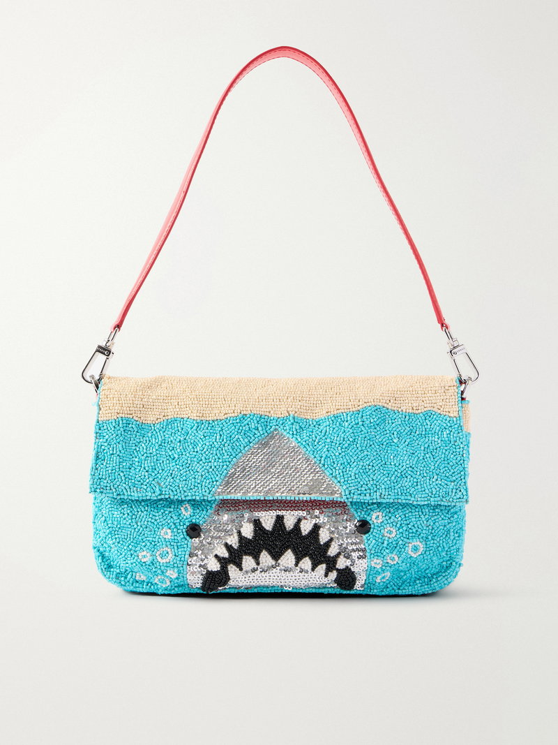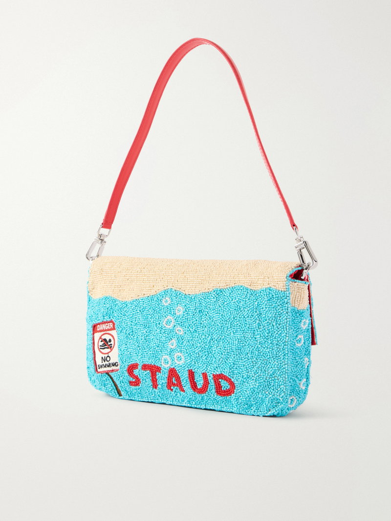 Embroidered with a playful shark motif, STAUD's 'Timmy' shoulder bag draws on nostalgic beachside references.