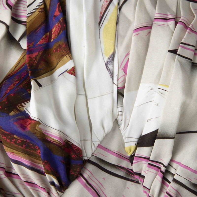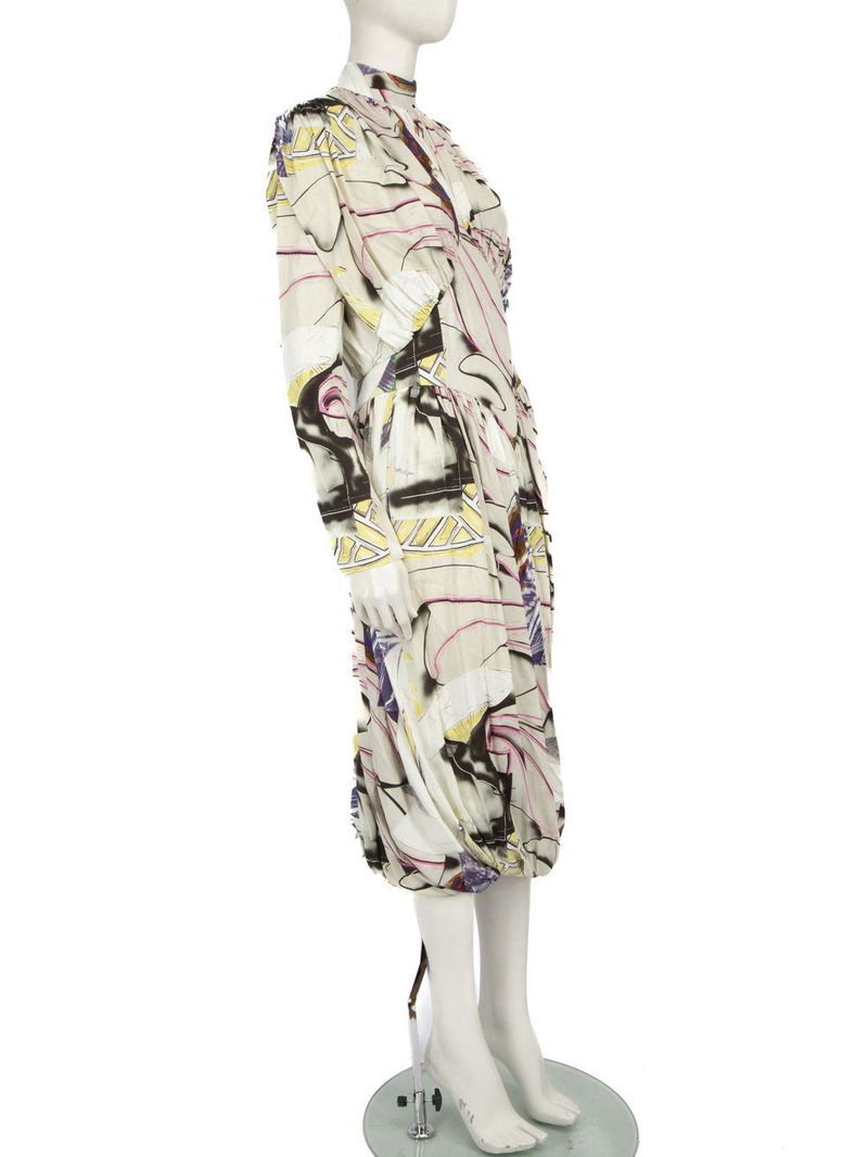 Brand new with tags, multicolour midi dress with drape detail, long sleeves and back zip fastening.