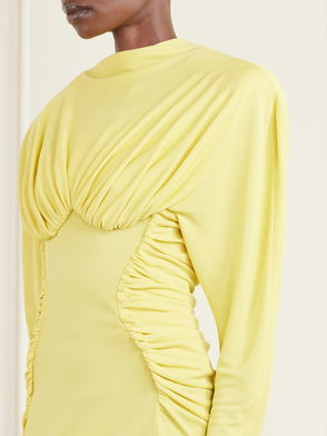 Stella McCartney stretch-woven mini dress. Concealed zip fastening at shoulder. Slim fit, round neck, one flared short sleeve, ruched at front, cape at back. Midweight, stretchy.