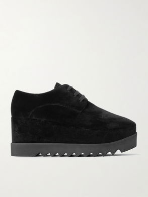 Stella McCartney's platform brogues are part of the 'Stellabration' collection, celebrating a decade of the iconic 'Elyse' style. This pair is made from plush velvet and has signature saw-edge platform soles.