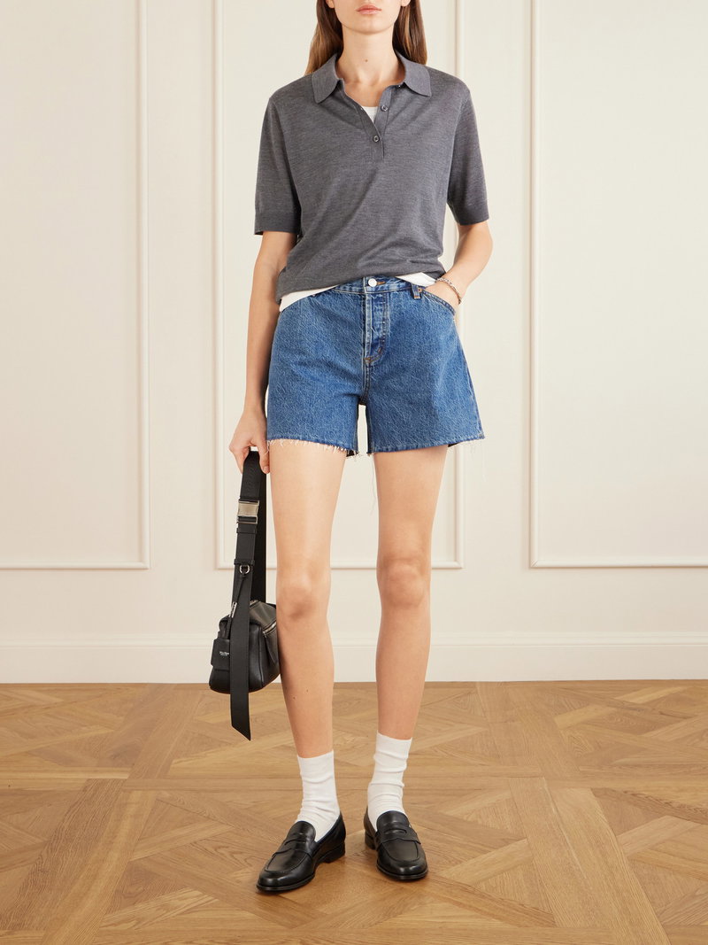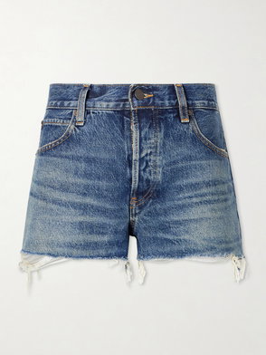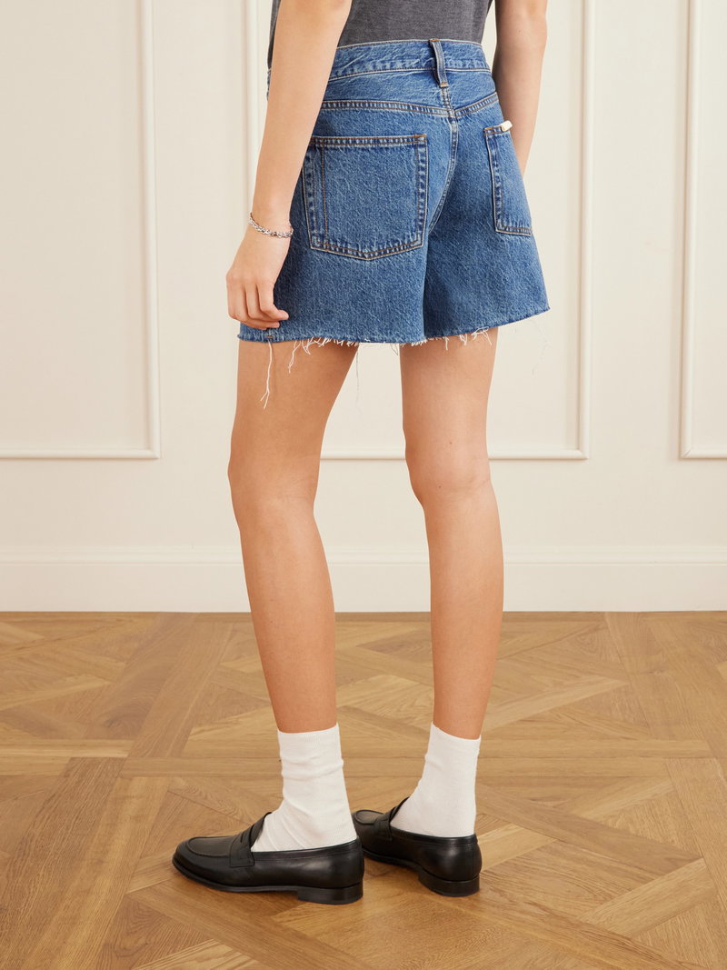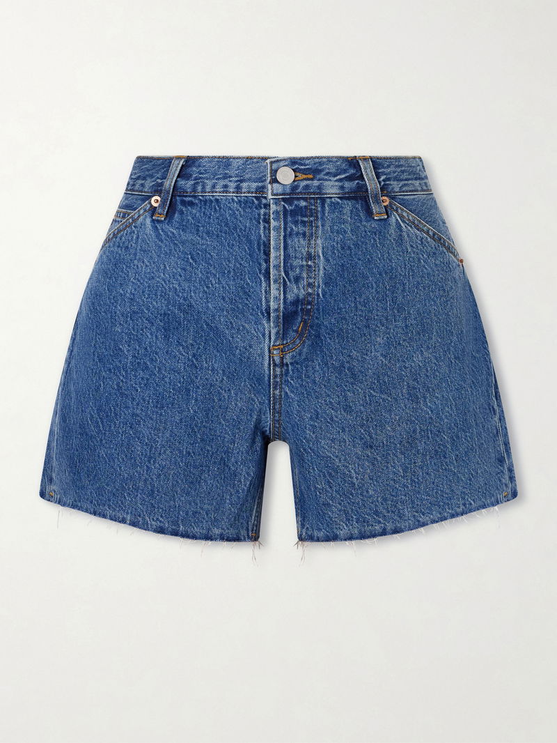 Inspired by the character of vintage denim, the 'Cut Off' shorts by Still Here reinterpret a summer staple through a relaxed silhouette. Crafted from pure cotton denim in a washed blue tone, they sit at a mid rise with straight pockets, a button fly, and a raw hem.