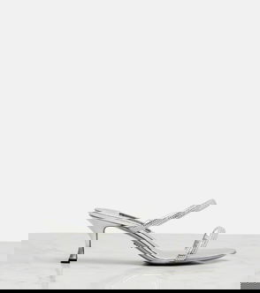 Cotton and nylon-blend satin slip-on heeled sandals in pink.· Open square toe · Logo patch at footbed· Buffed leather lining in brown· Covered block heel and platform midsole · Treaded rubber outsole.