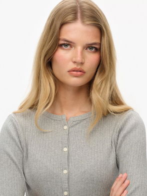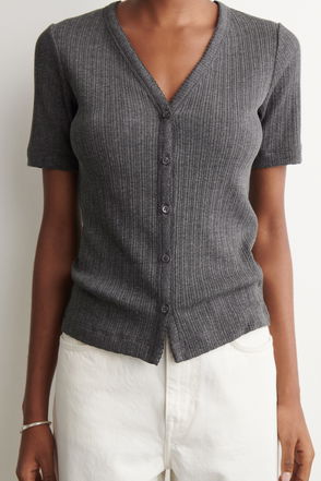 Athletic Essential Pointelle Cardigan In Grey Marl