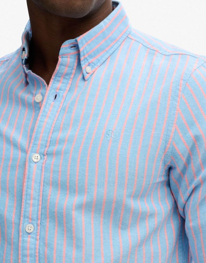 Classic Oxford Long Sleeve Shirt In French Blue Stripe/coral