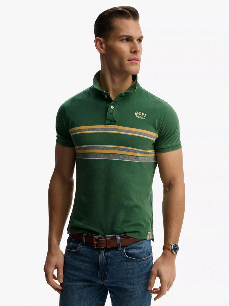 Enhance your wardrobe essentials with this cotton polo shirt by Superdry. Pepped up with a chest stripe.