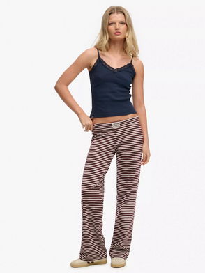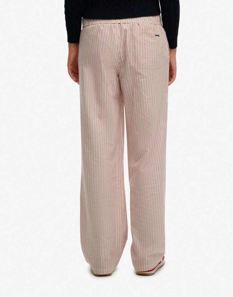 Cotton Stripe Elasticated Trousers In Bordeaux Red Stripe