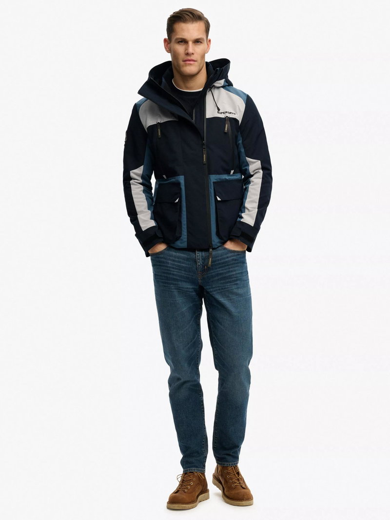 Crafted to balance retro-inspired style with practicality, this jacket is cut in a slim fit for a more tailored look. Coated with an advanced water-resistant finish, features include multiple bungee-adjustable elements, hooded with a second ribbed collar, two-way zip fastening, four external pockets, one internal mesh pocket, and hook and loop adjustable cuffs.