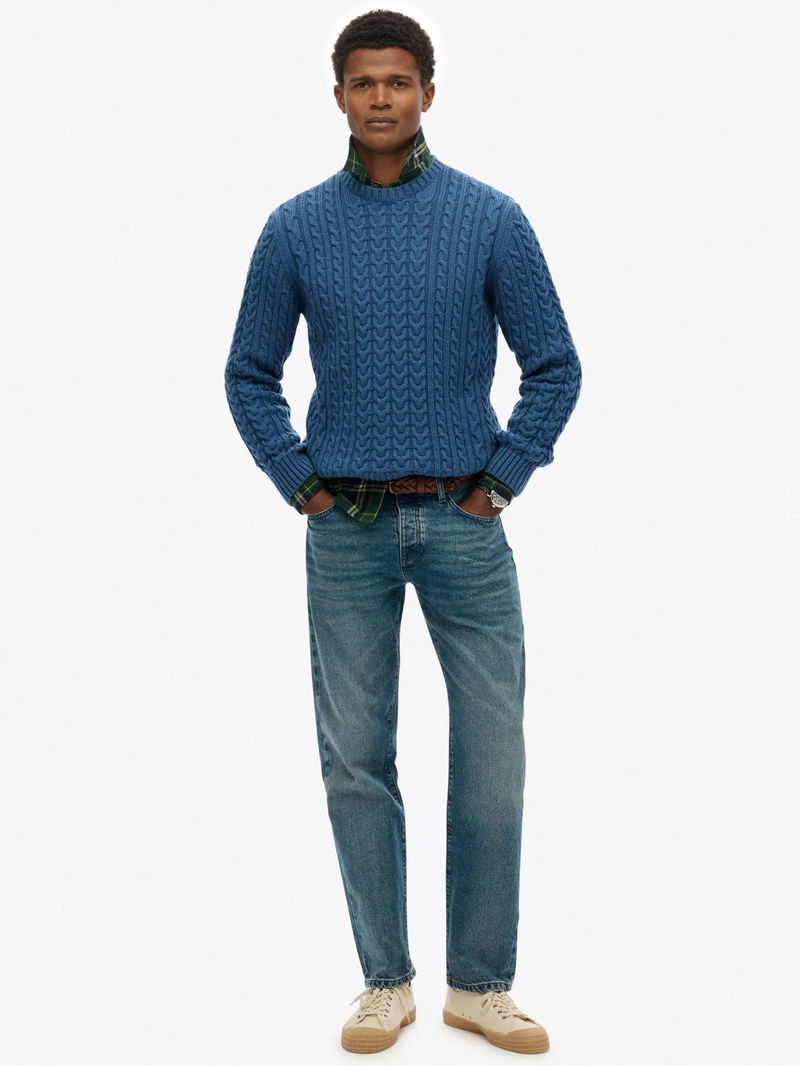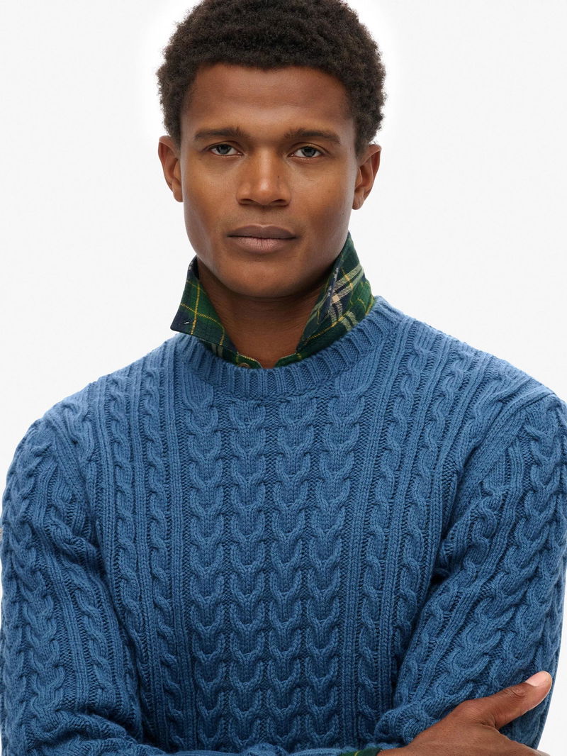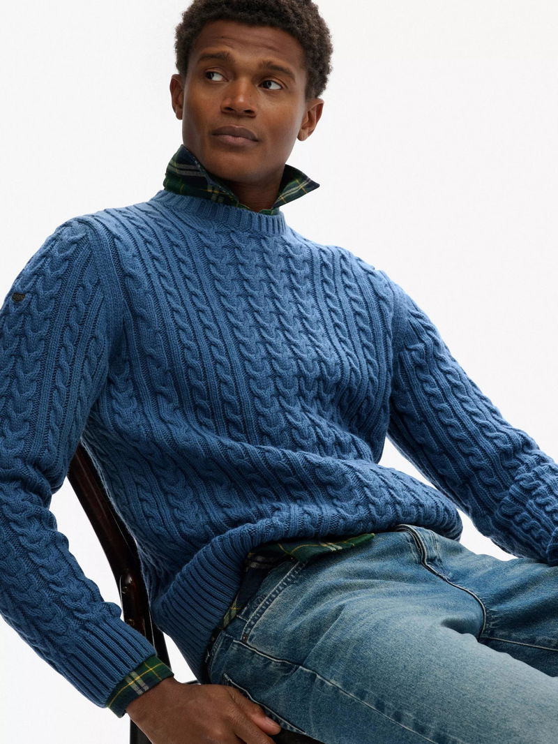 Jacob Wool Blend Cable Knit Jumper, Coast Blue