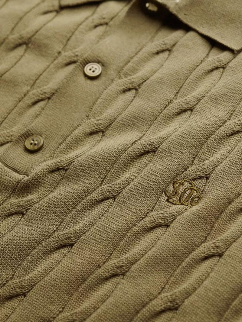 Knitted Texture Short Sleeve Polo Shirt, Artichoke Green