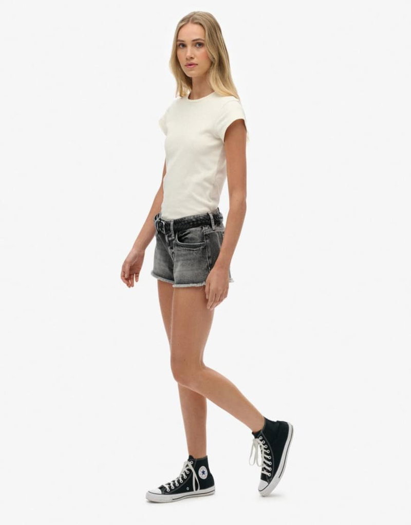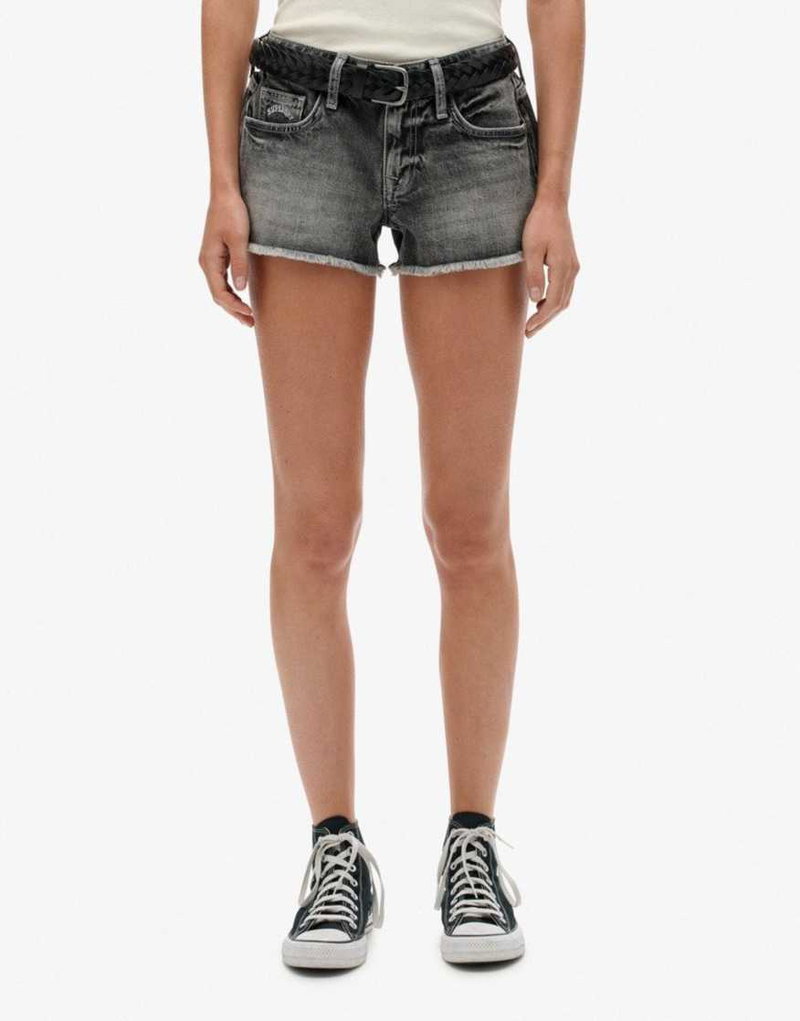Low Rise Denim Hot Shorts In Vintage Black Denim
