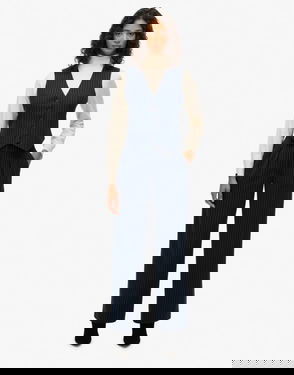 Mid Rise Pinstripe Trousers In Charcoal Pinstripe