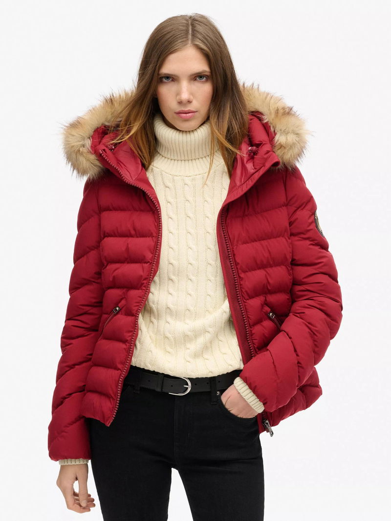 Padded Jacket With Faux Fur Hood, Stanton Red