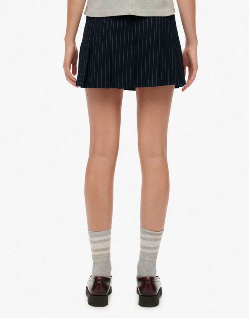 Pinstripe Pleat Mini Skirt In Navy Pinstrp