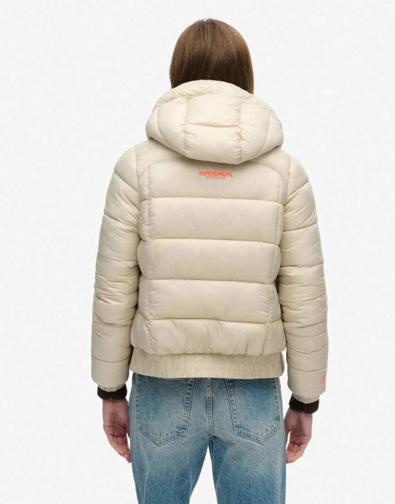 Sports Puffer Bomber Jacket In Pelican Beige