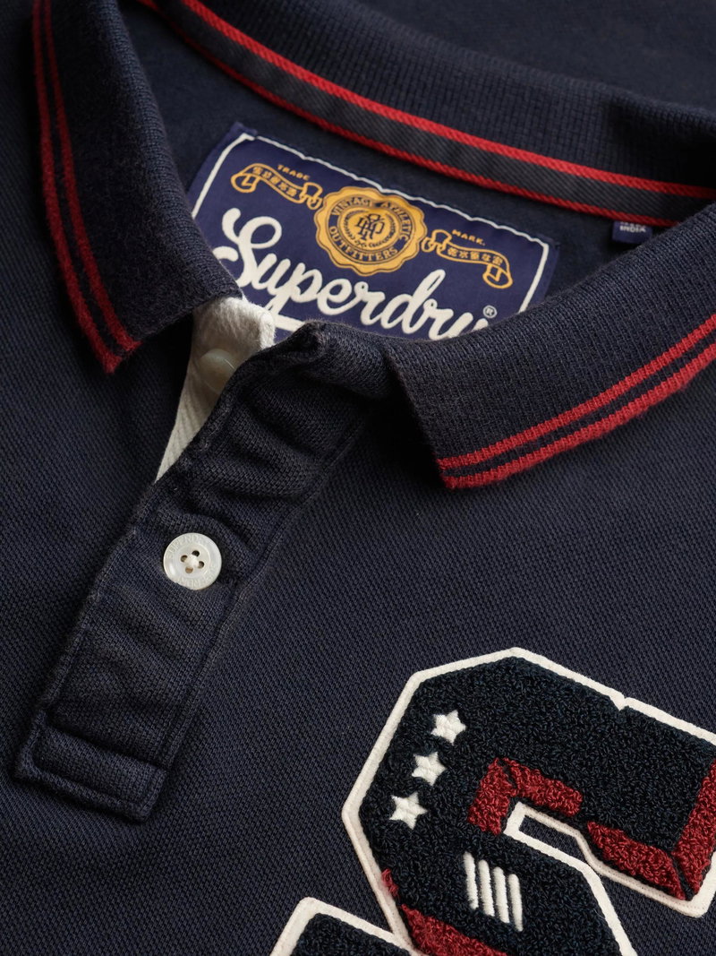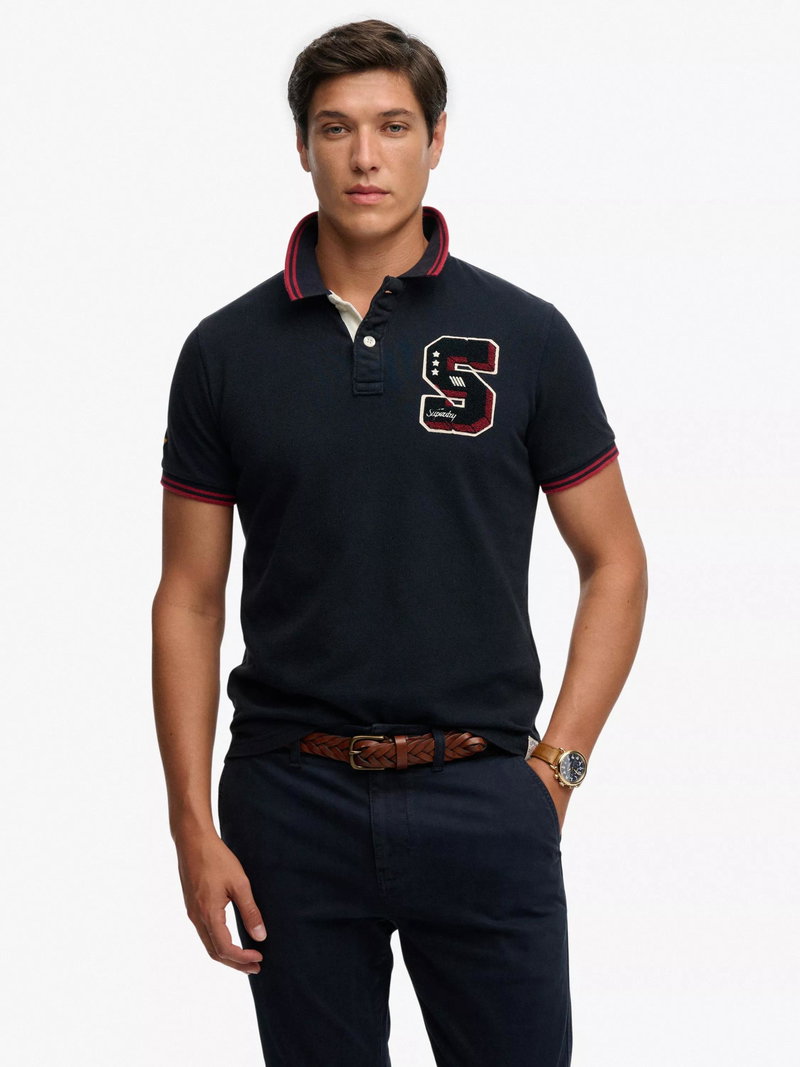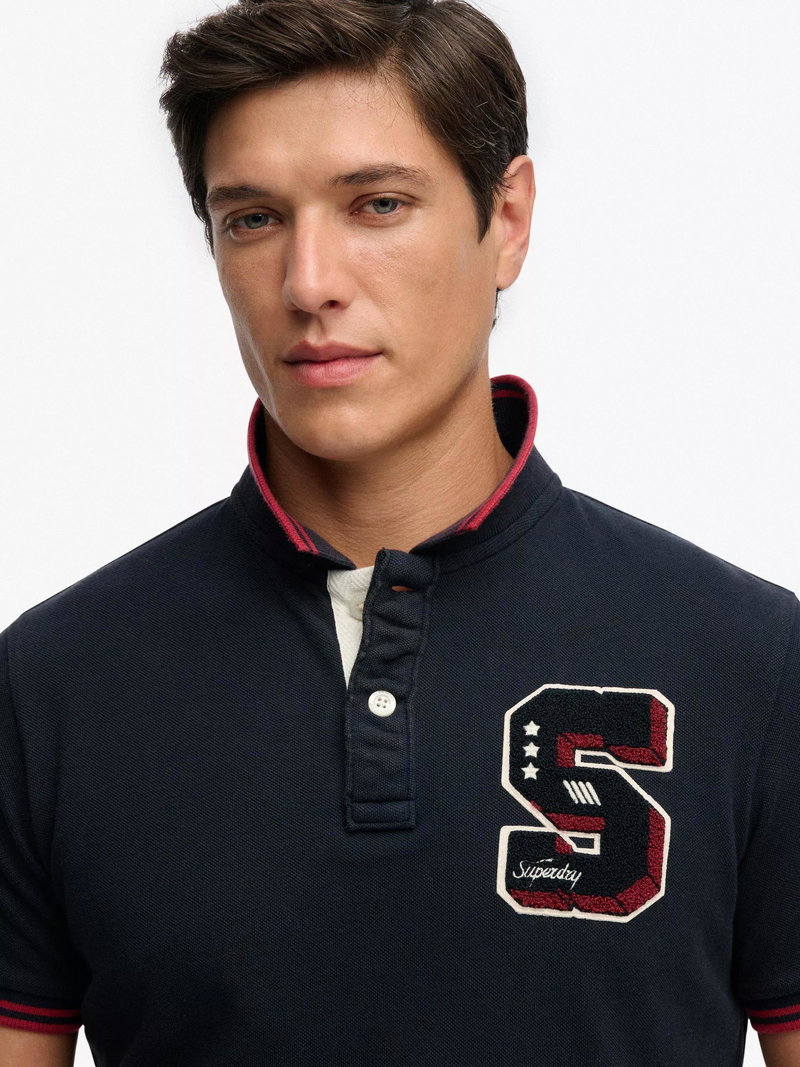 Vintage Athletic Patch Cotton Polo Shirt, Eclipse Navy