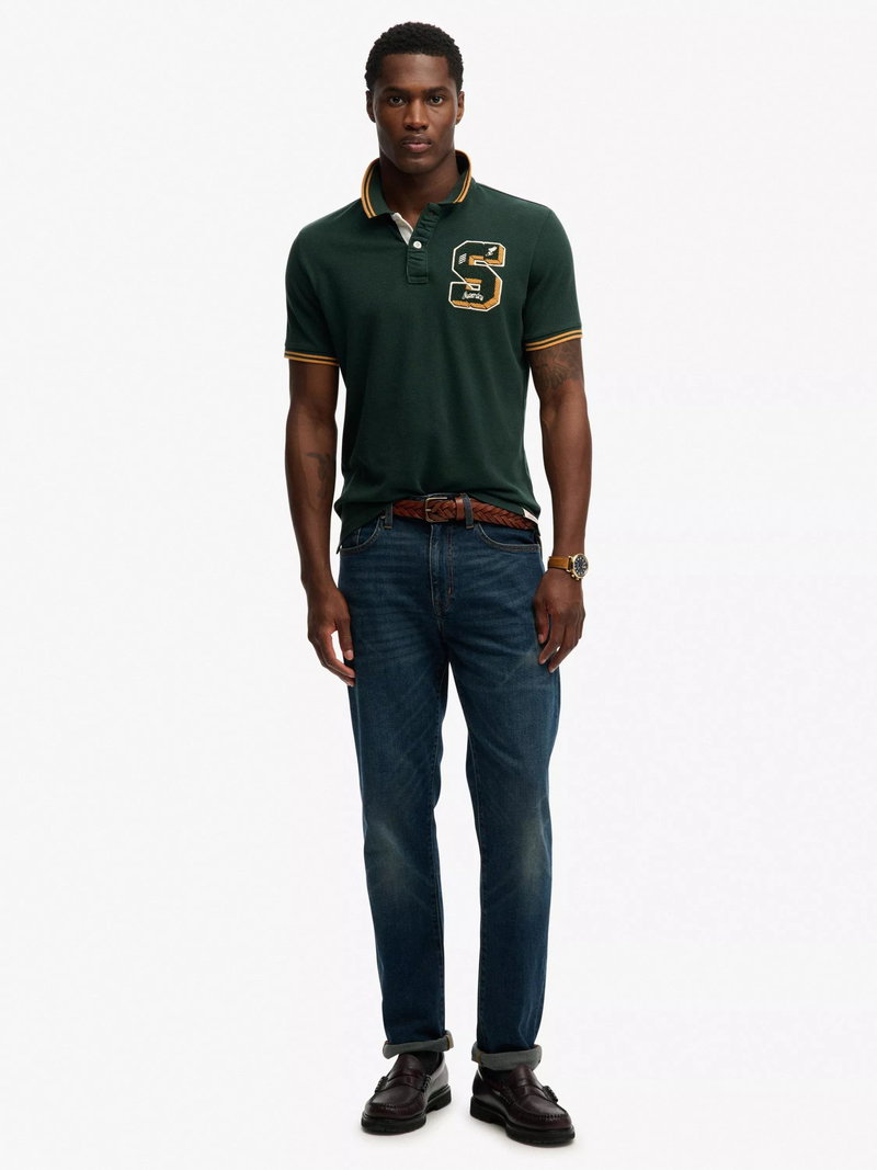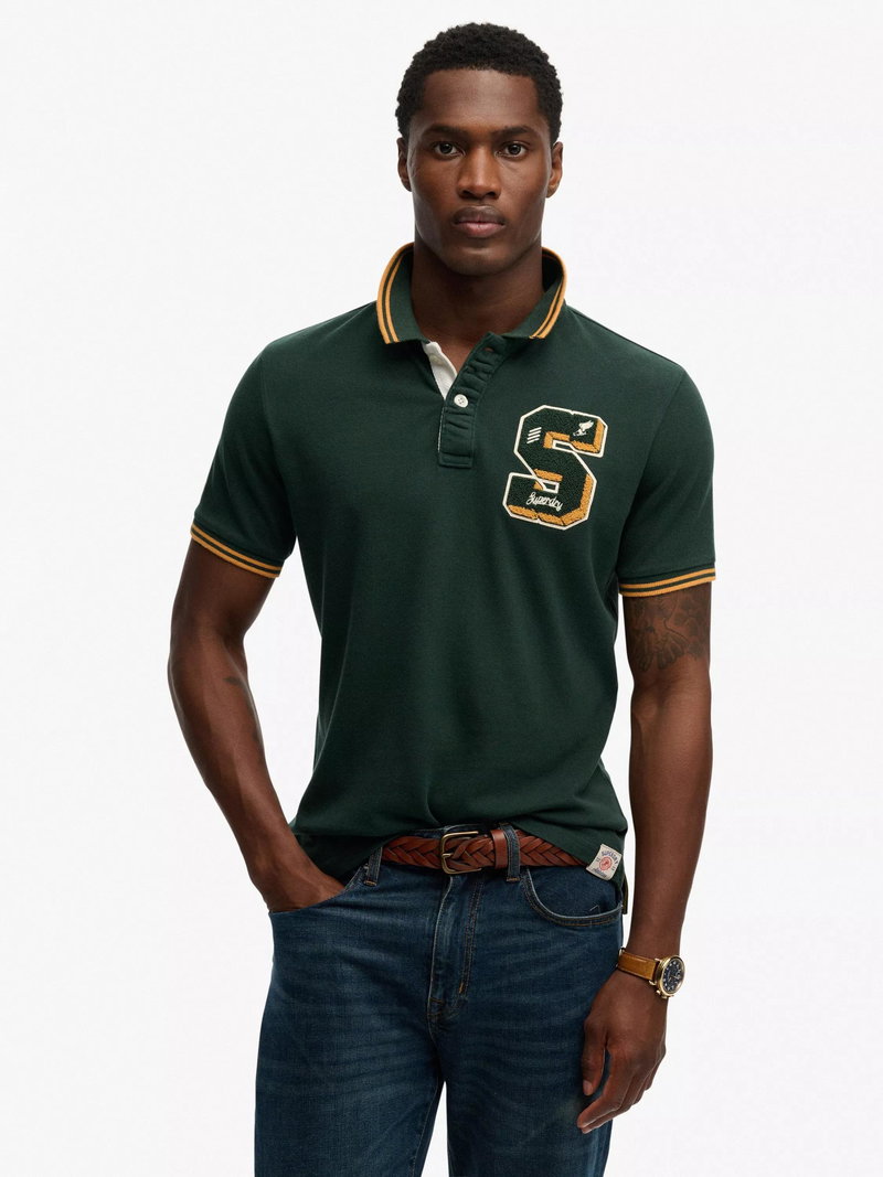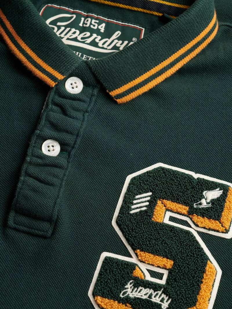 Vintage Athletic Patch Cotton Polo Shirt, Enamel Green