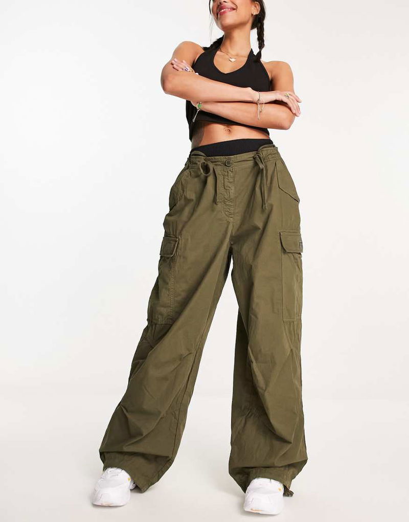 Vintage Baggy Parachute Trousers In Khaki