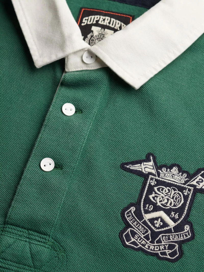 Vintage Pique Cotton Relaxed Fit Rugby Polo Shirt, Hunter Green