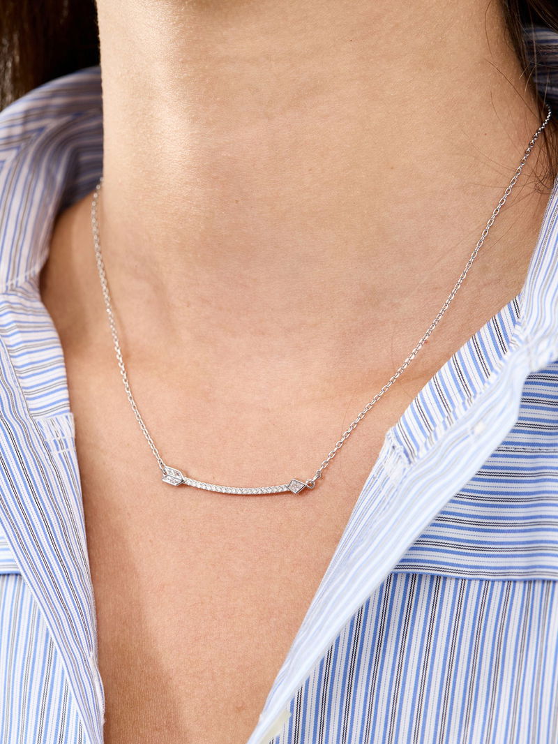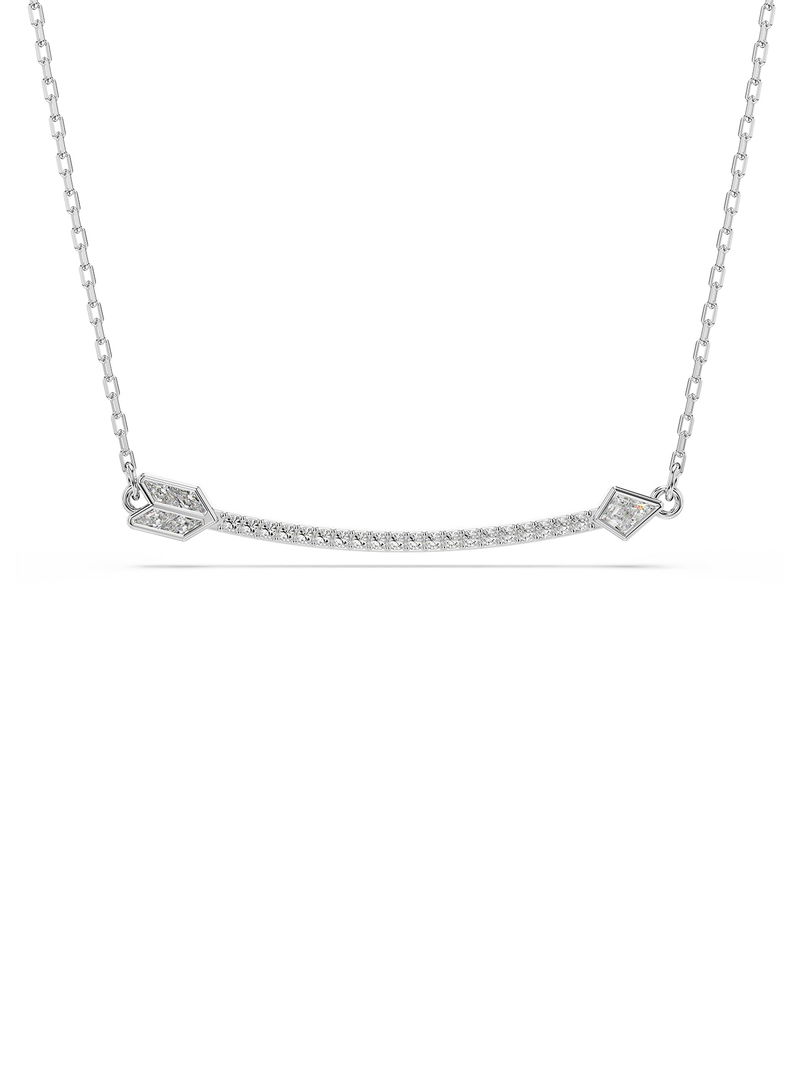 The Arrow Pendant Necklace by Swarovski is a brass pendant necklace crafted with crystal detailing in a sleek arrow silhouette.