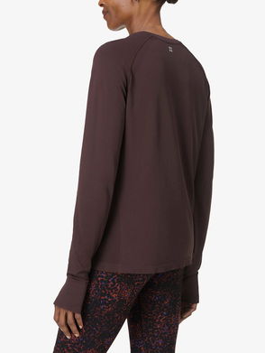 All-in-one from Sweaty Betty for studio workouts and everyday wear. The ultra-lightweight fabric is soft, sweat-wicking and stretchy. Slim fit with long sleeves and crew neck. Inner bra support with removable pads.
