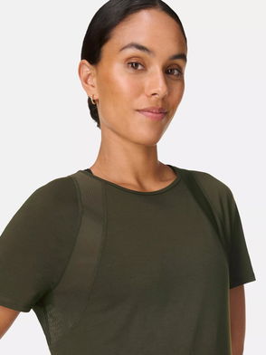 Sweaty Betty organic-cotton T-shirt. Slips on Relaxed fit, round neck, long sleeves, logo print to chest. Lightweight, slight stretch.
