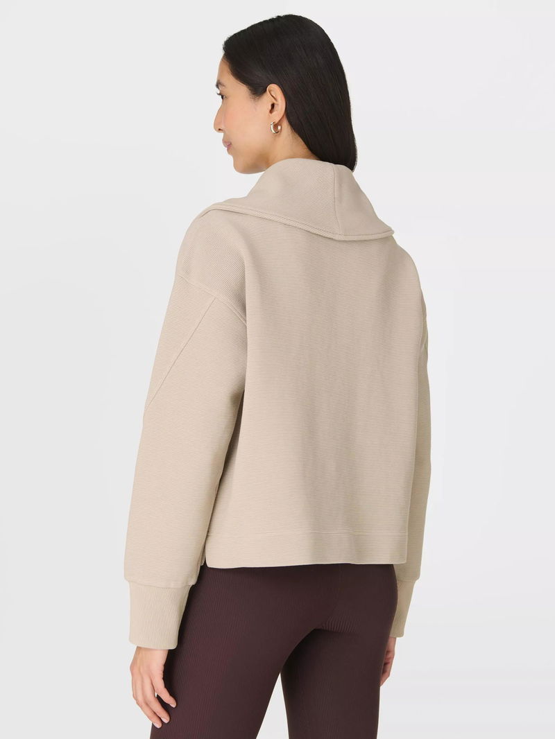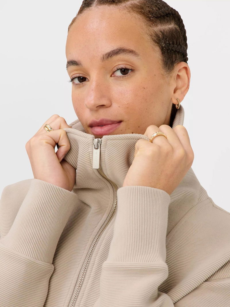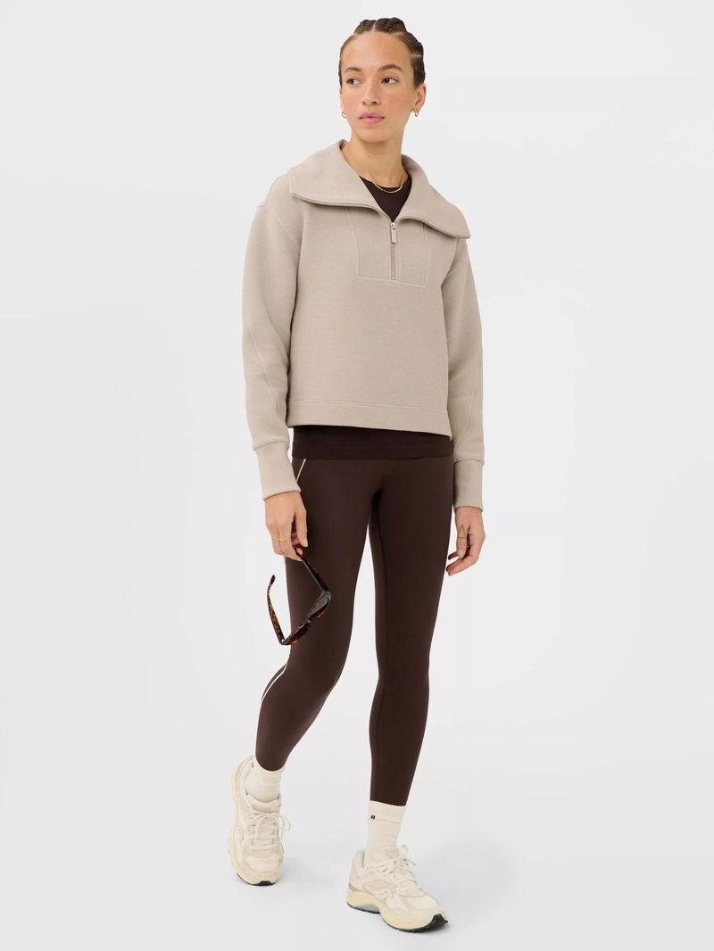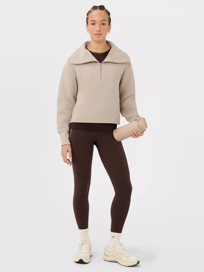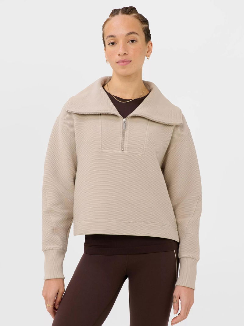 A comfy cropped half zip for studio-to-street style. Made from a soft, cotton-blend knit. Boxy, cropped fit with wide sleeves and half zip. Deep hem and cuffs in contrast rib.