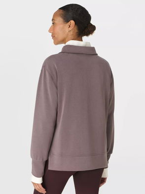 A cropped cut of the Sand Wash Sweatshirt. Peachy soft fabric has a lightweight, scuba-like feel. Relaxed, cropped fit with dropped shoulders and full-fashioned sleeves. Wide collar with half zip.