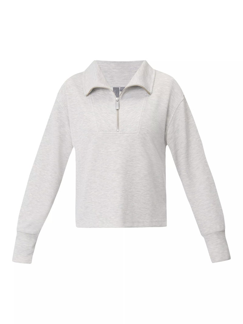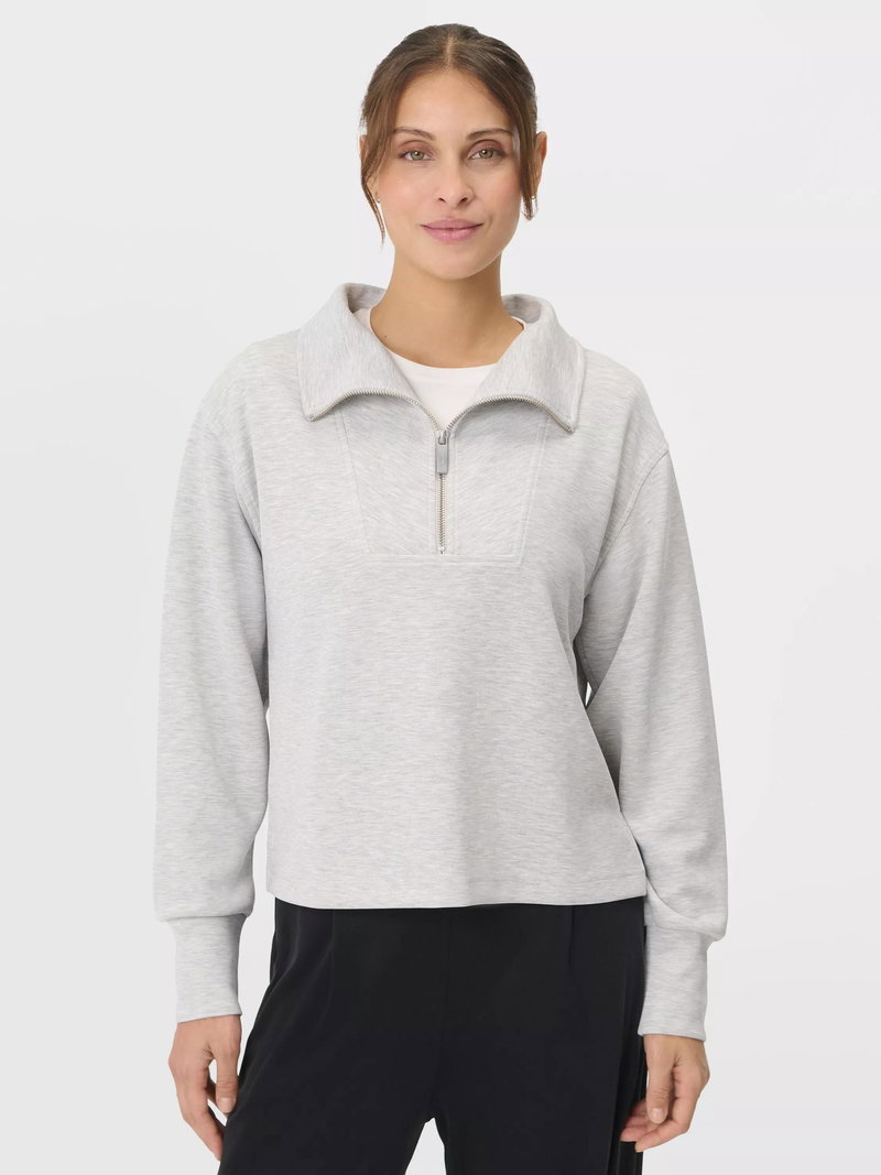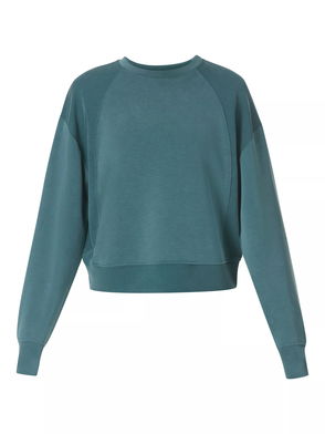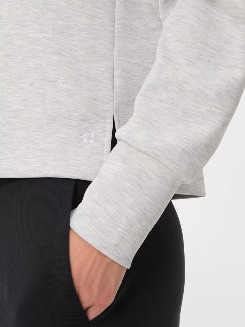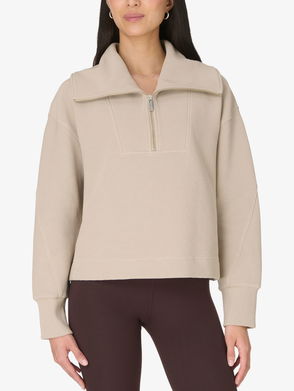 A cropped cut of the Sand Wash Sweatshirt Peachy soft fabric has a lightweight, scuba-like feel Relaxed, cropped fit with dropped shoulders and full-fashioned sleeves Wide collar with half zip.