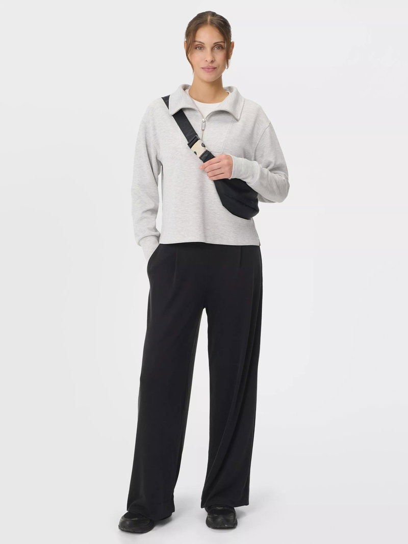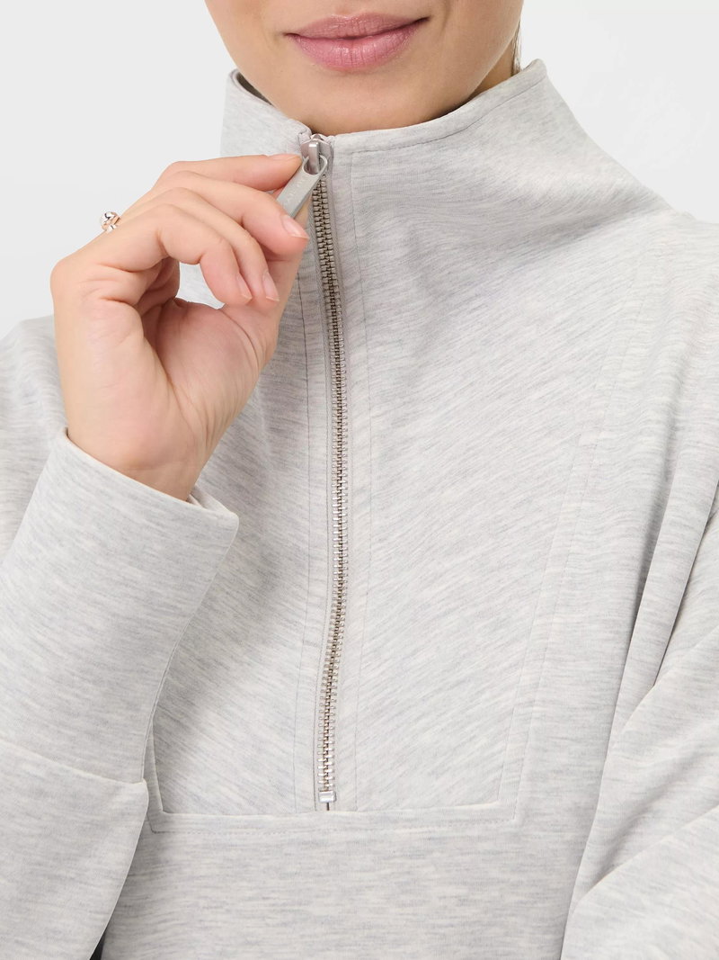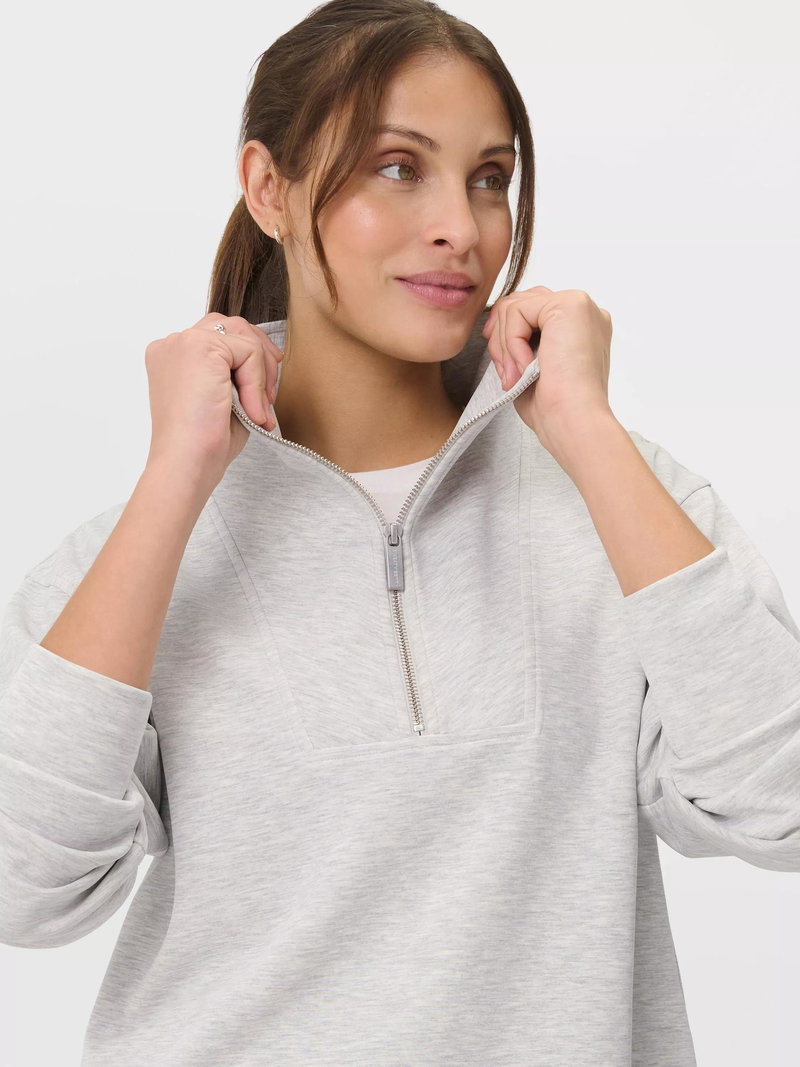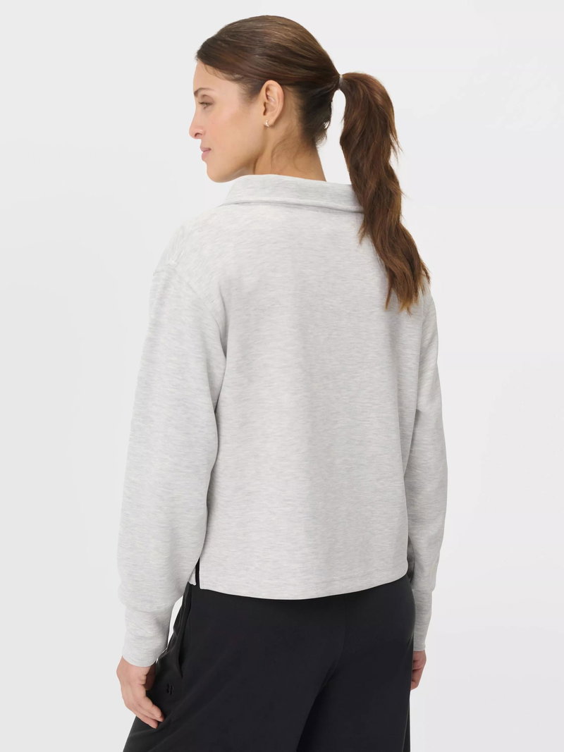 A cropped cut of the Sand Wash Sweatshirt Peachy soft fabric has a lightweight, scuba-like feel Relaxed, cropped fit with dropped shoulders and full-fashioned sleeves Wide collar with half zip.