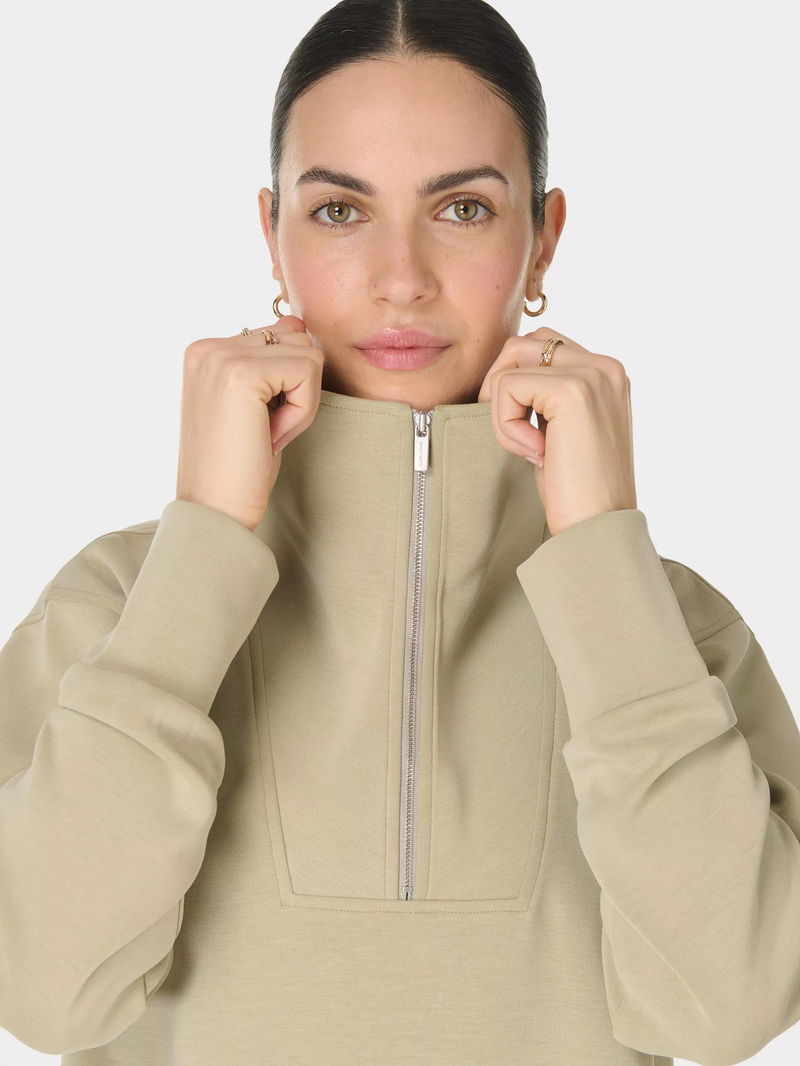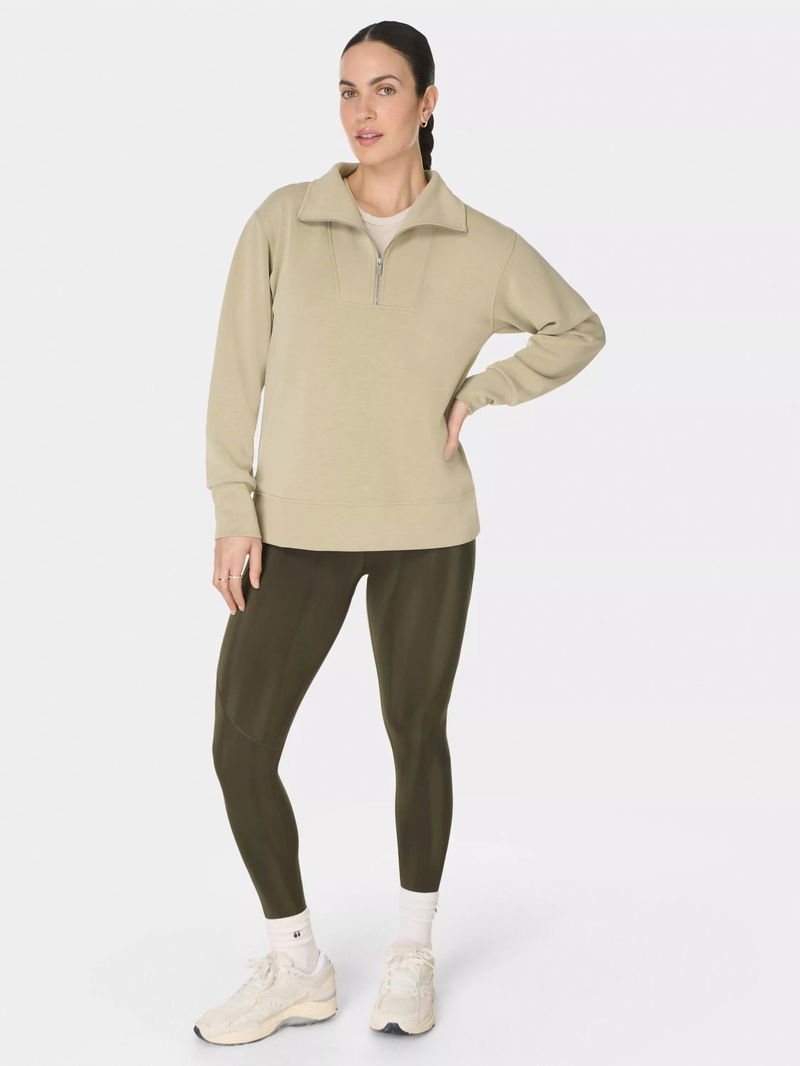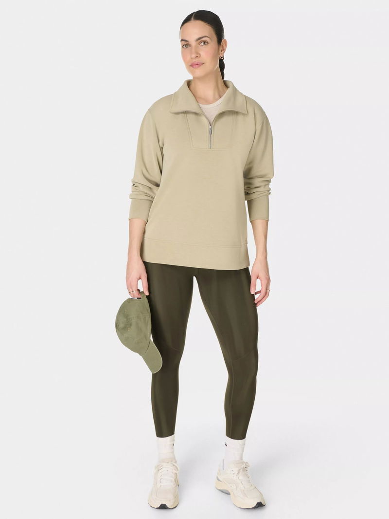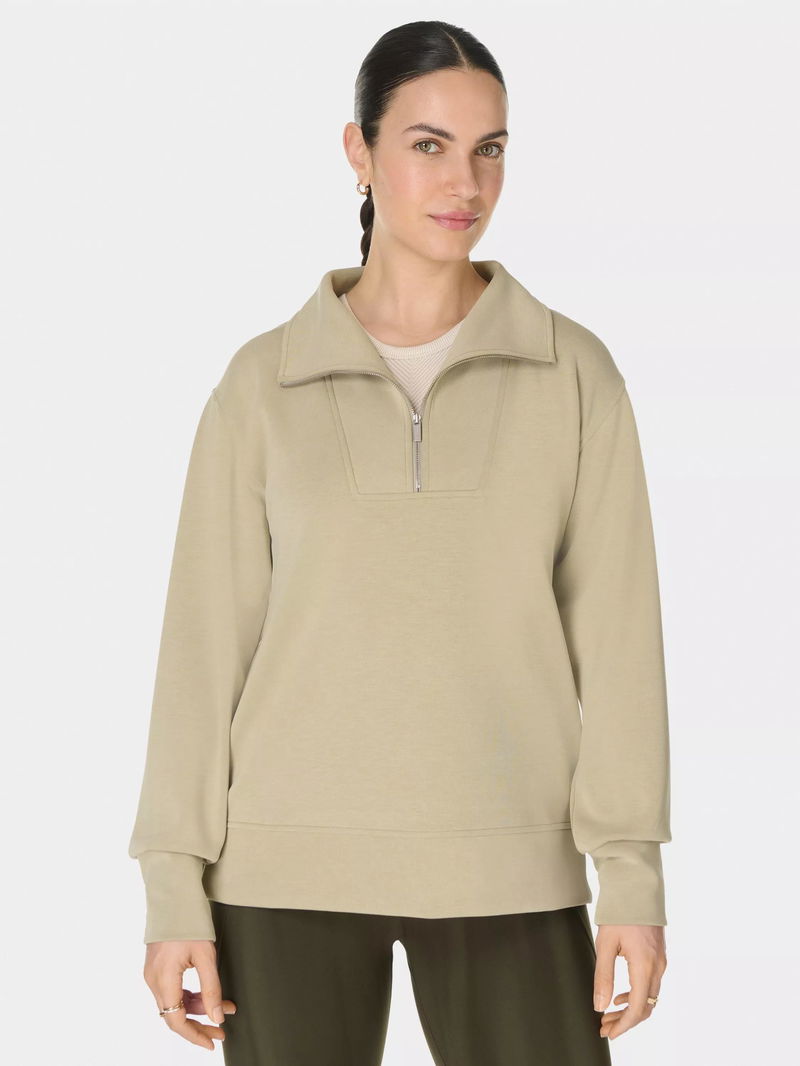 Sand Wash Half Zip Longline Sweatshirt, Light Green
