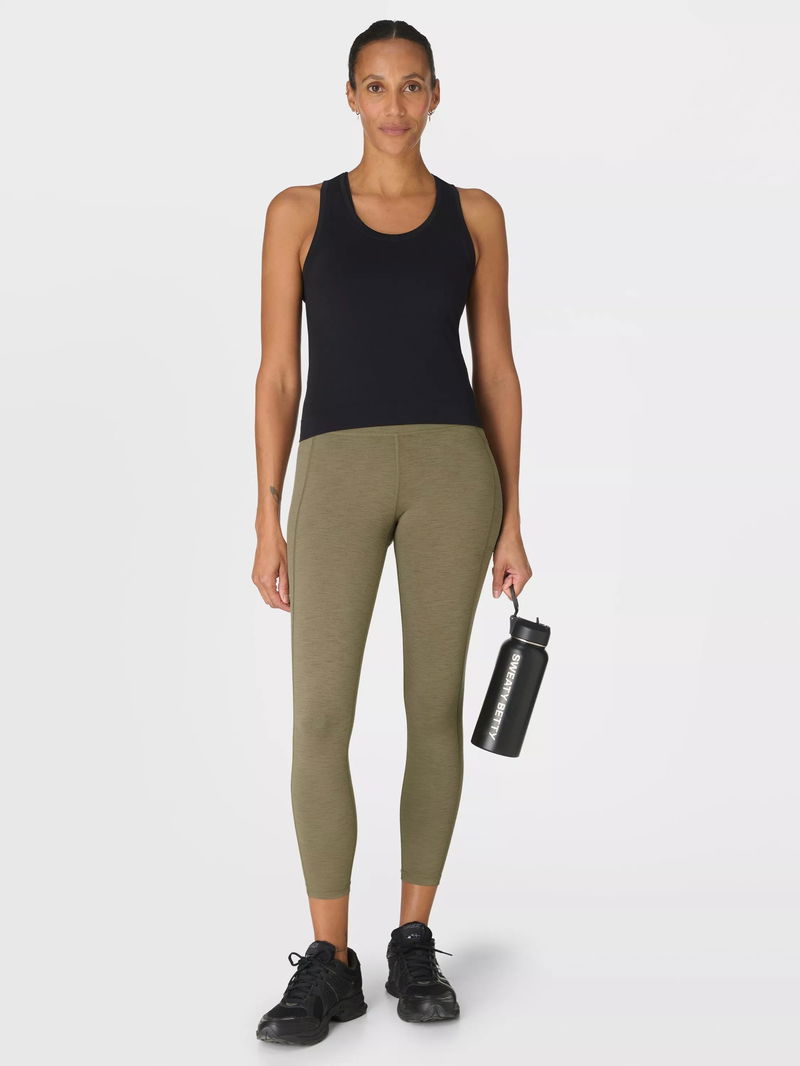 Ultra-supportive leggings for yoga, Pilates and barre. Sweat-wicking and quick-drying for all workouts. Supportive, high-waisted design with smooth waistband. Side slip pocket.
