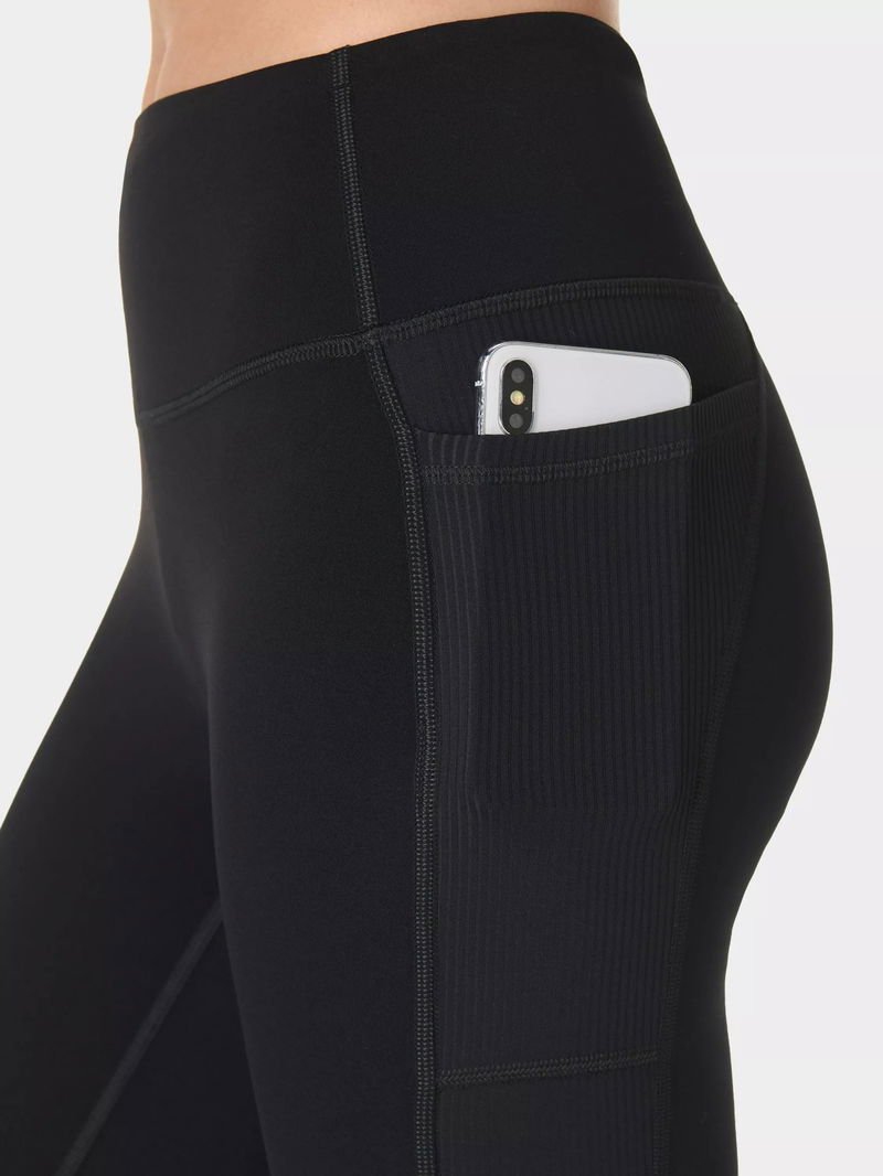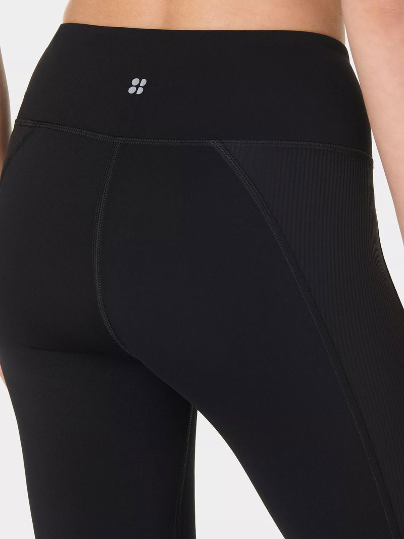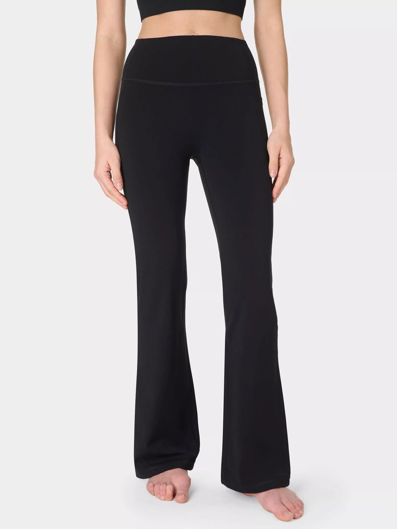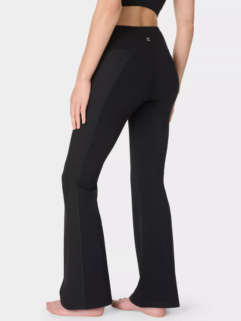 Flared leg yoga trousers by Sweaty Betty, made in a soft, stretchy ribbed blend with a mid-rise drawstring waist. The clever design adapts to your day, offering support as you move while keeping comfort at the forefront. Perfect for active routines or relaxed moments alike.
