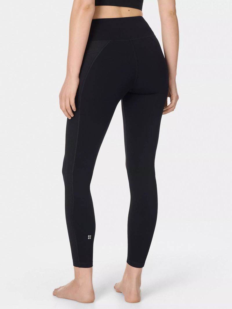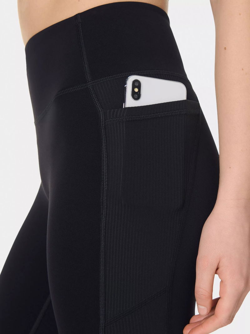 Soft, streamlined performance yoga leggings with ribbed detailing. Fabric is quick-drying and sweat-wicking with gentle compression and a supple, second-skin softness that feels like nothing else. Subtly curved high waist with a supportive fit that hugs your body and flexes as you flow. Pared-back design with minimal seams and a smooth waistband for comfort on the mat. Side slip pocket for your phone.