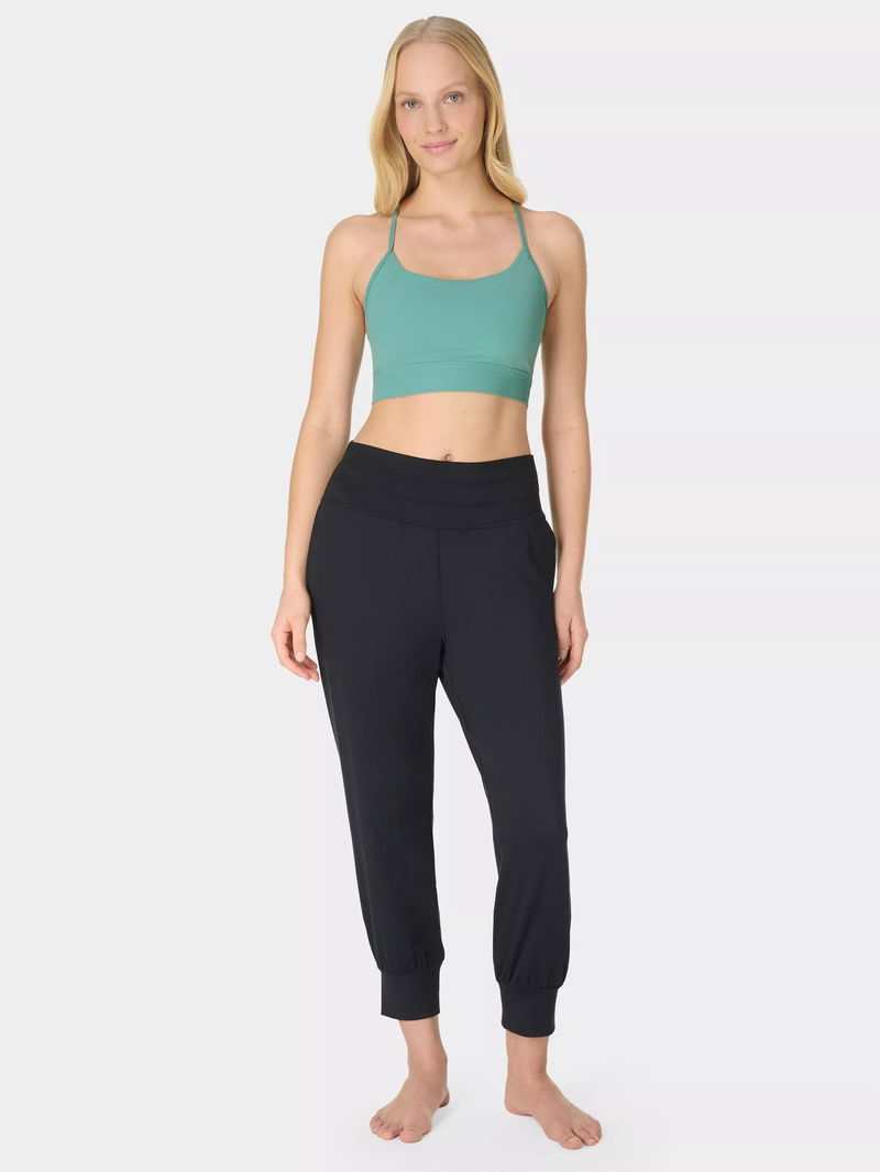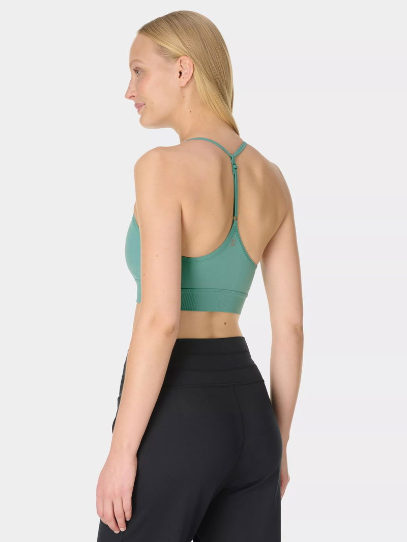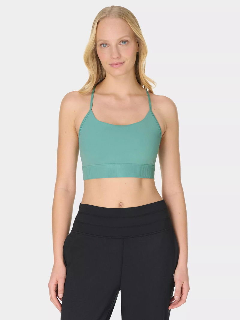 This non-wired yoga bra gives you reliable support with total comfort. Its smooth, soft ribbed fabric lets you move freely, whether you are stretching, training, or on the go.