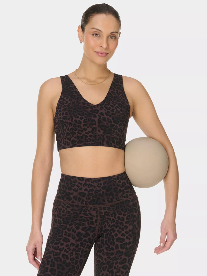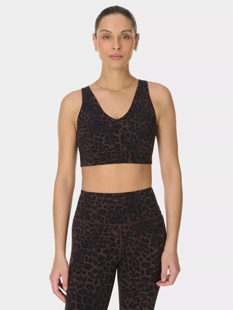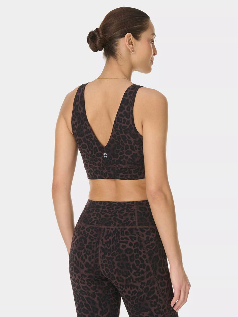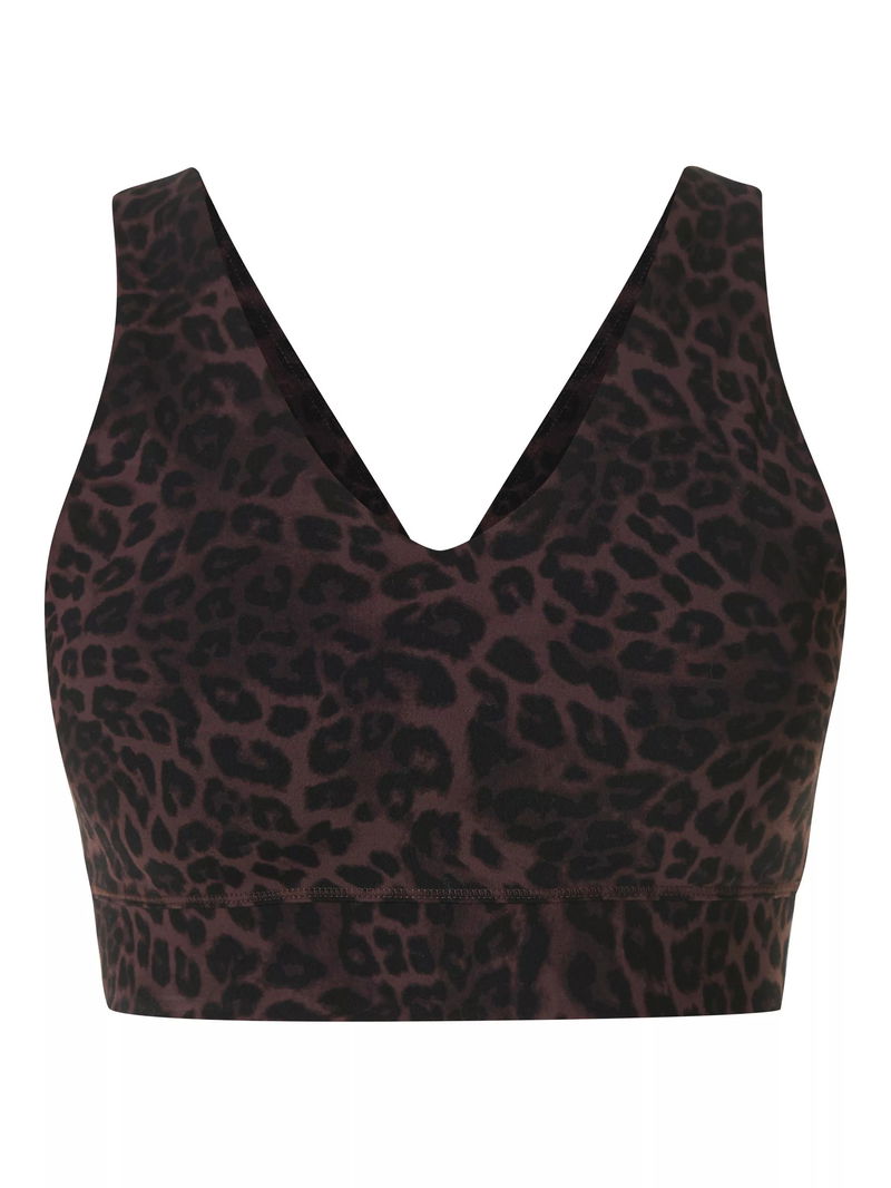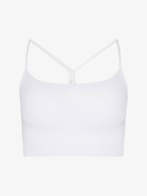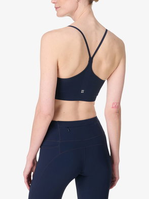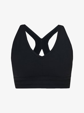 Incredibly soft, streamlined performance bra for yoga, Pilates and barre Fabric is quick-drying and sweat-wicking with gentle compression and a supple, second-skin softness that feels like nothing else V-neck scoop neckline and back with smooth underband Ultra-sleek, pared back design with no visible seams or padding.