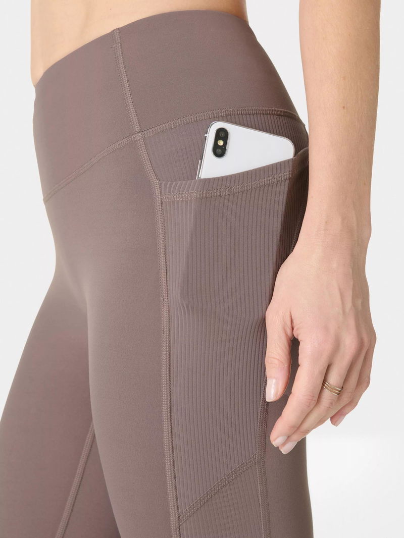 Soft, streamlined performance yoga leggings with new ribbed detailing Fabric is quick-drying and sweat-wicking with gentle compression and a supple, second-skin softness that feels like nothing else.