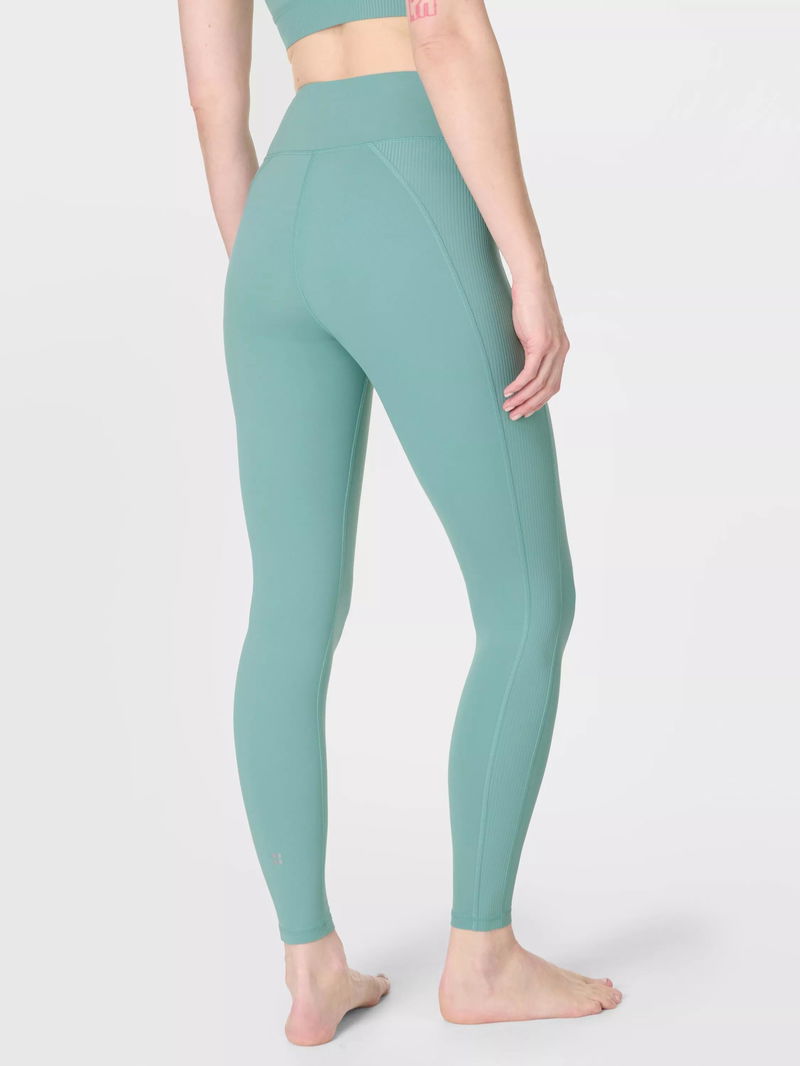 Soft, streamlined performance yoga leggings with new ribbed detailing. Fabric is quick-drying and sweat-wicking with gentle compression and a supple, second-skin softness that feels like nothing else. Subtly curved high waist with a supportive fit that hugs your body and flexes as you flow. Pared-back design with minimal seams and a smooth waistband for comfort on the mat. Side slip pocket for your phone.