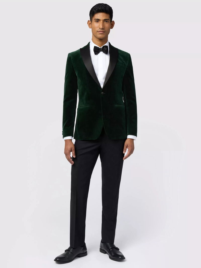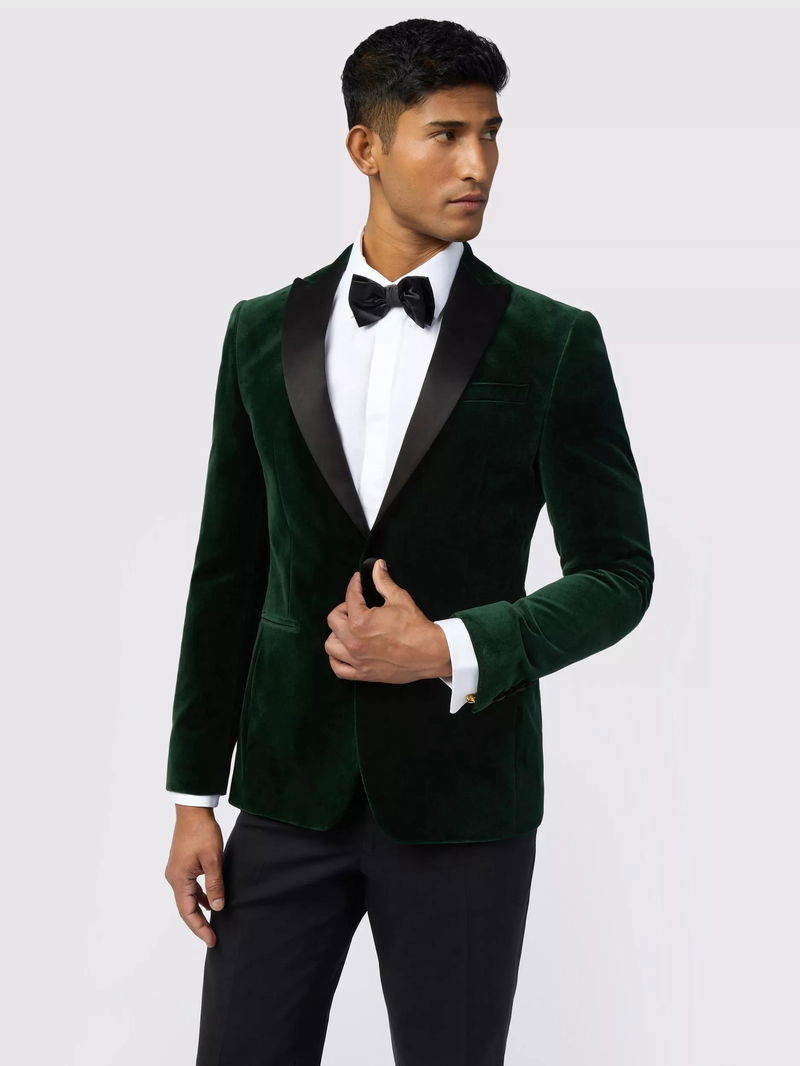 Tighe Slim Fit Velvet Dinner Jacket, Forest Green