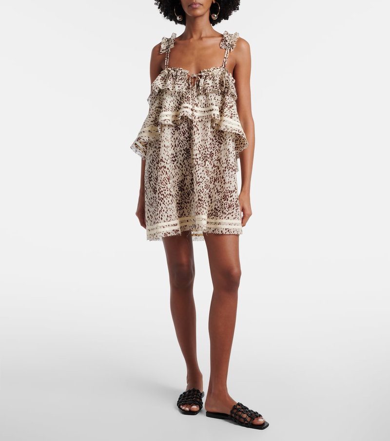 The Attico’s message is simple – it’s time to dress up. Featuring a striking leopard print, this cotton minidress features an A-line silhouette with tiered ruffle panels and a self-tie neckline.