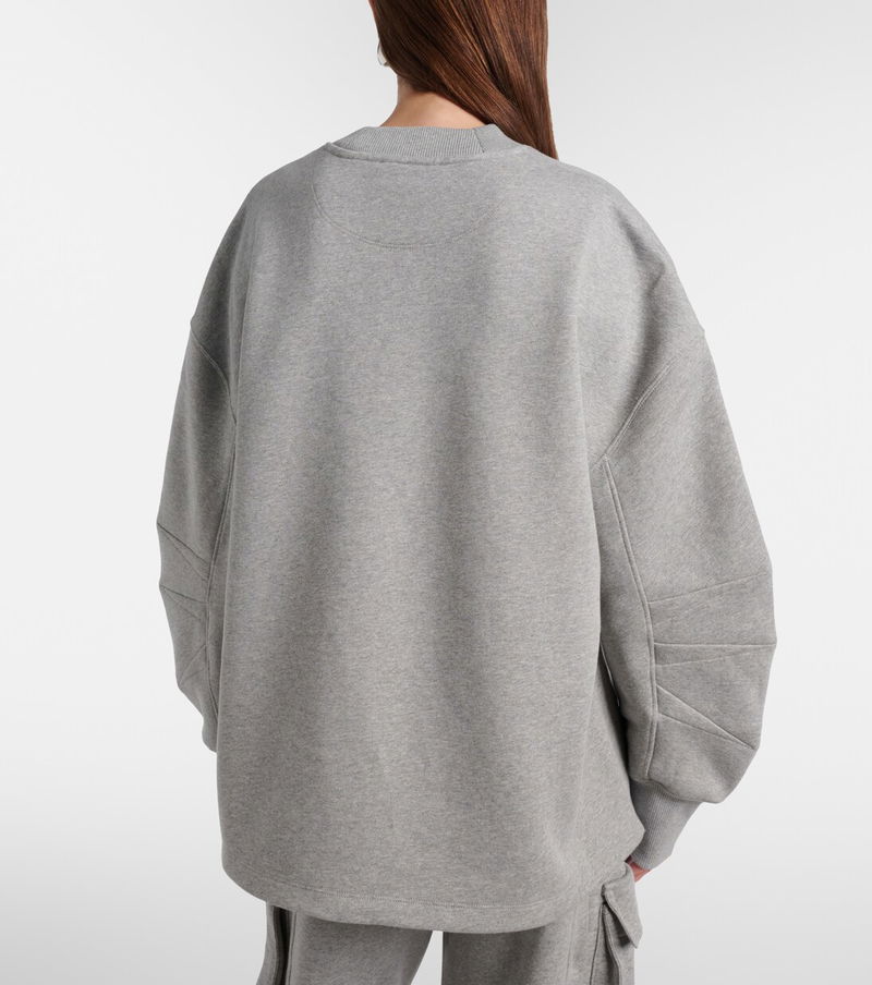Pearl-Embellished Patch Cropped Cotton-Blend Jersey Sweatshirt
