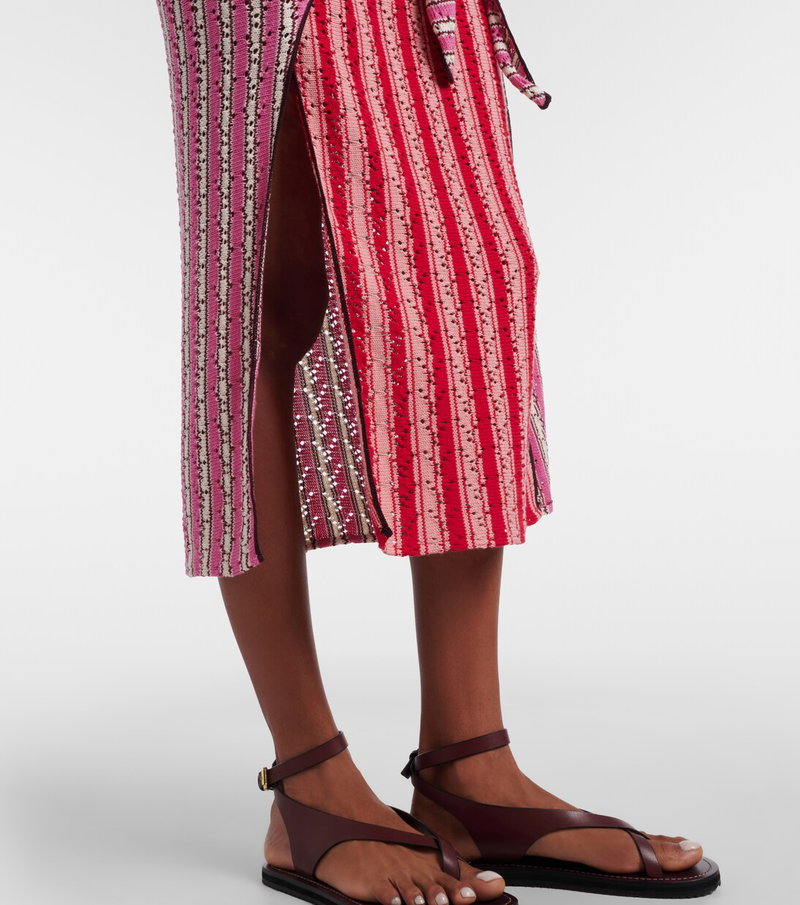 Striped Crochet-Knit Cotton Midi Dress