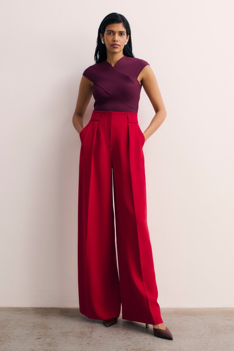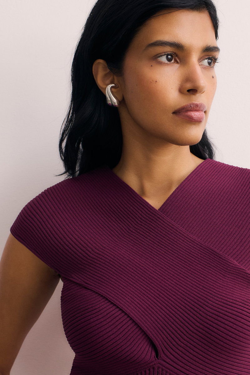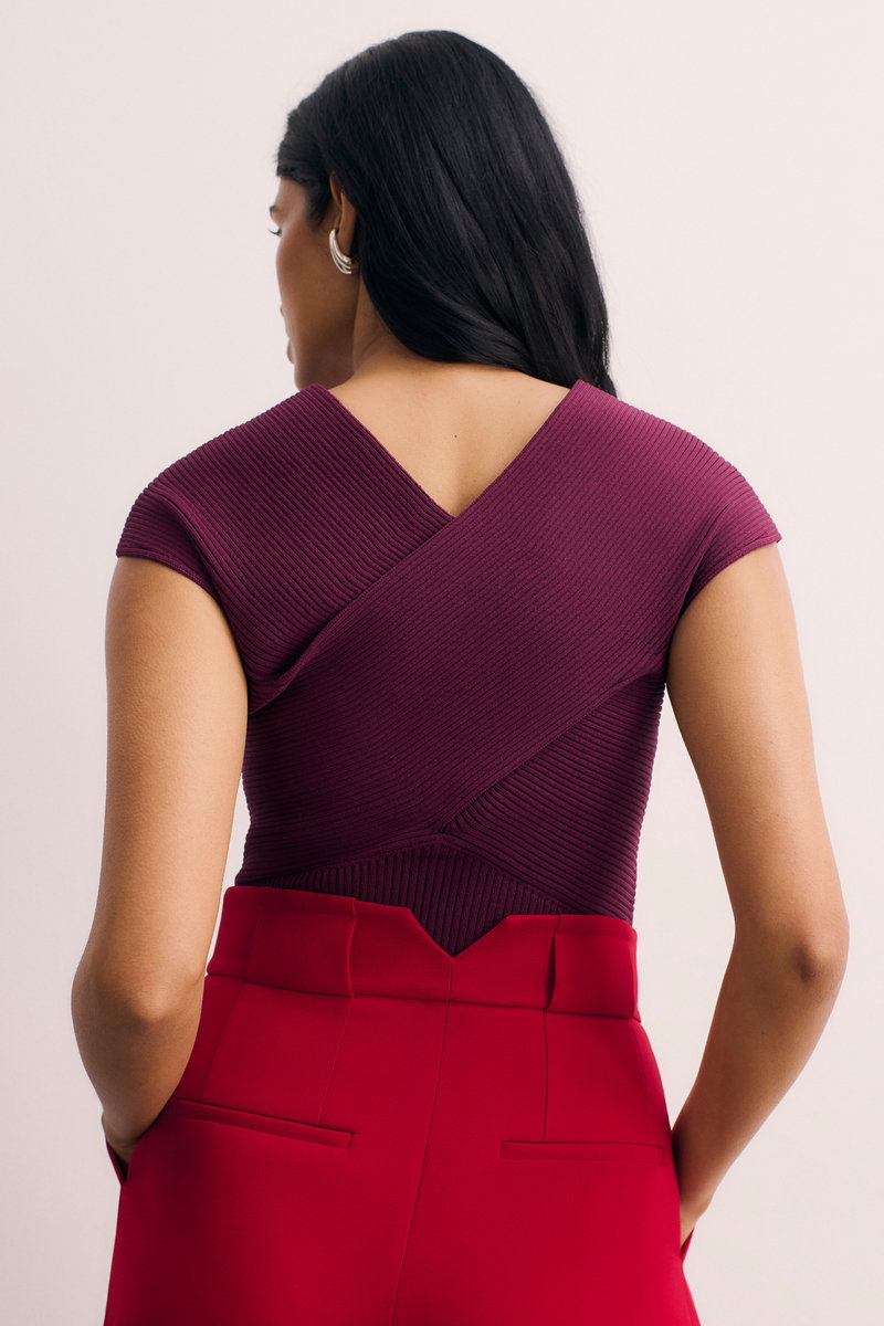 Freshen up your everyday tailoring with the Elodie top. The slim fitting silhouette has full-length sleeves, a crossover wrap neckline and an elegant ribbed texture. Plus, it's in our signature sculpt stretch knit, so you'll stay feeling comfortable and looking polished all day long. Wear with the coordinating Alzira trousers.