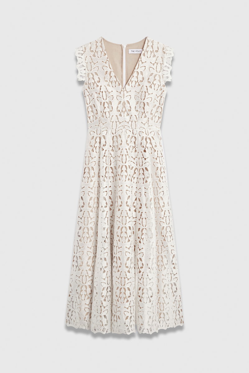 Our bestselling Valance shape is back in beautiful ivory lace. Its flared skirt has the perfect amount of volume thanks to clever panelling, while its scalloped hem and cuffs reflect the pattern of its abstract lace for a truly exquisite finish. Plus, darts to the bodice ensure it’s flattering on every body.