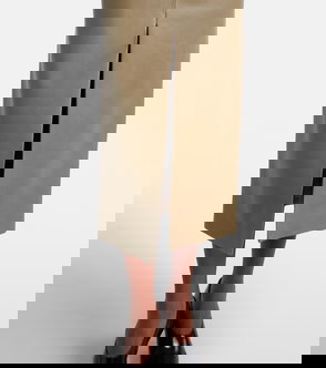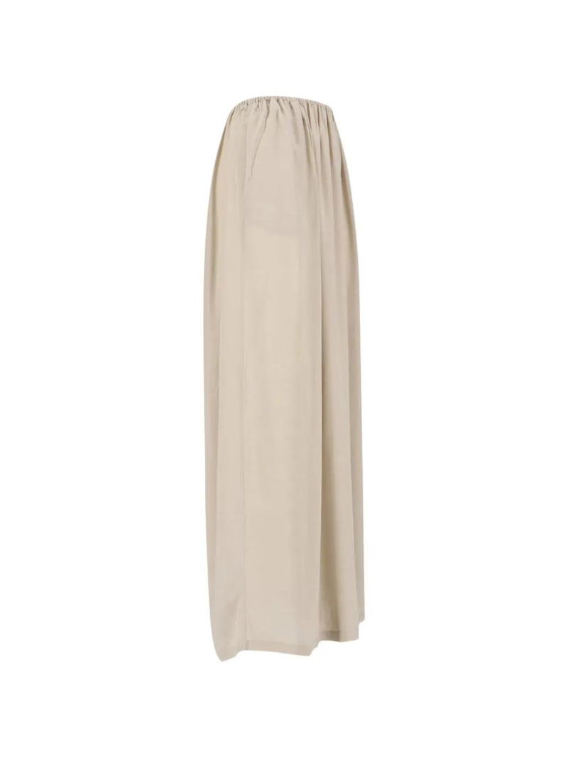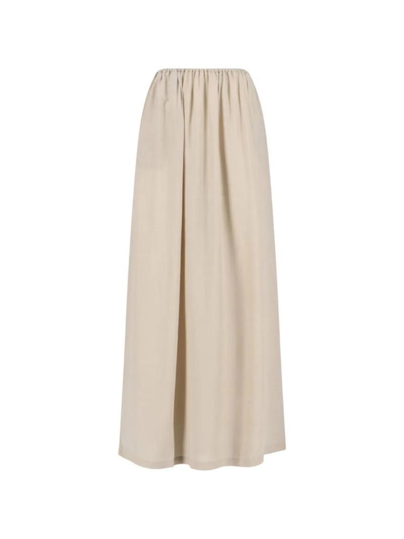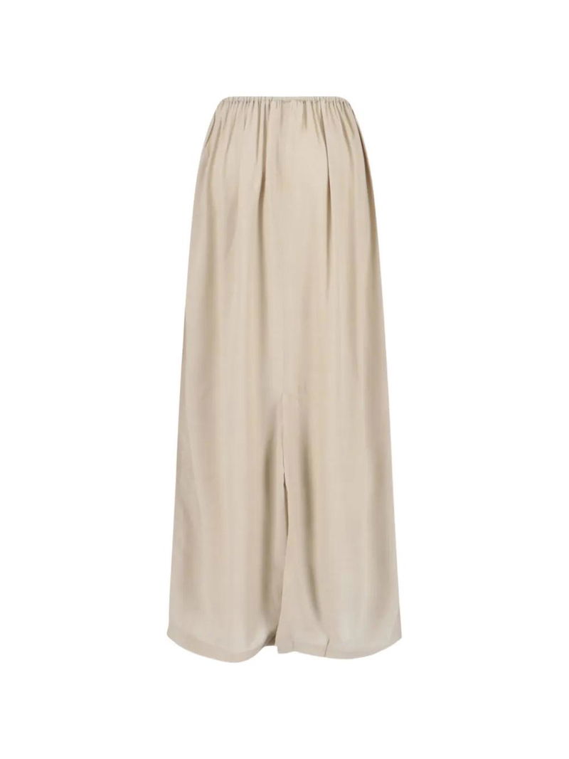 Beige gathered detail back split maxi length side pockets.