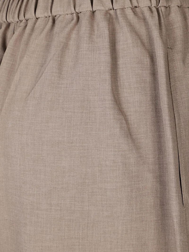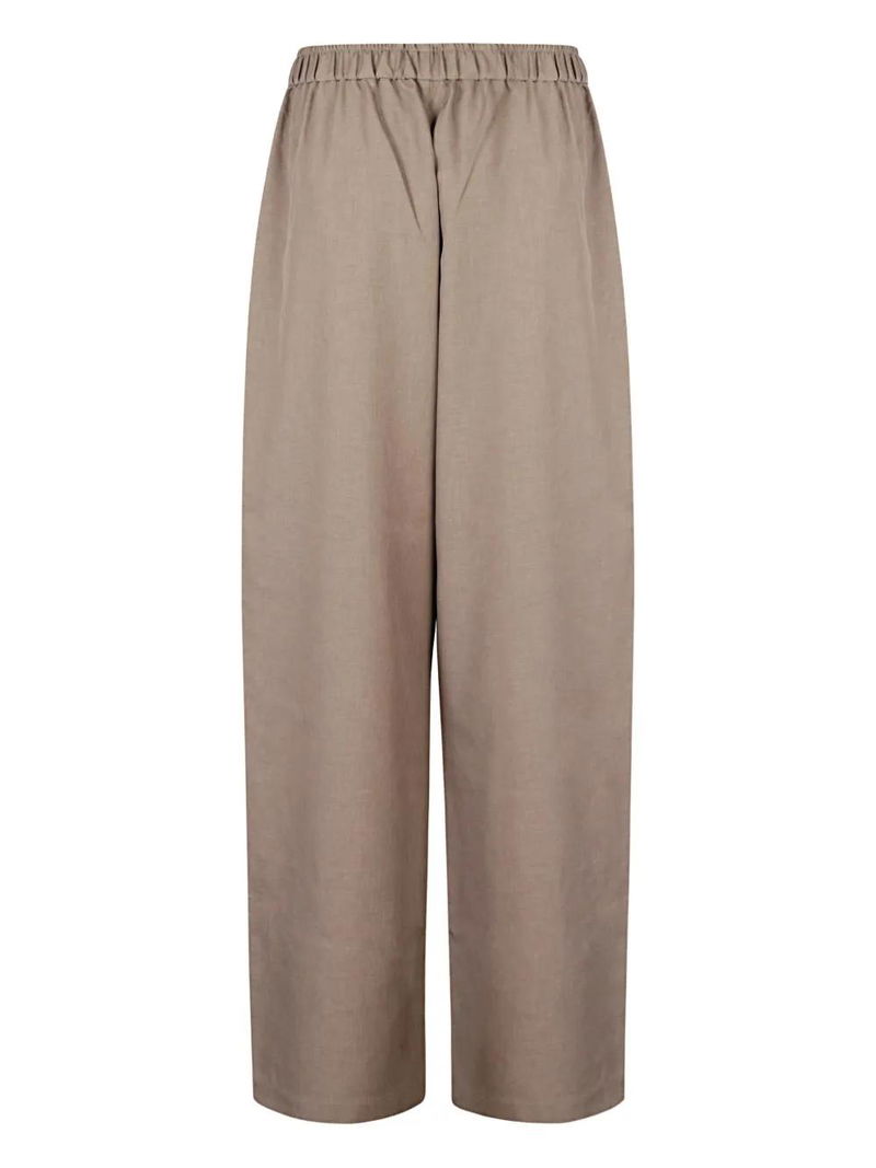 Light beige, elasticated waist, wide leg. side seam pockets.