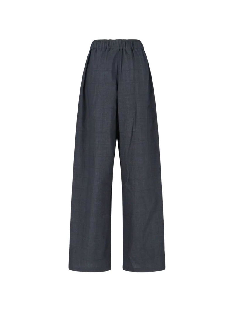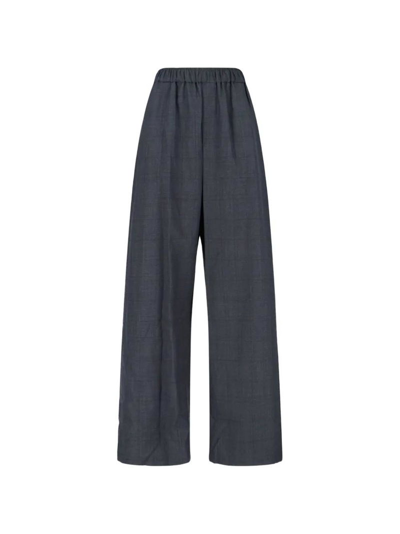Grey, plaid pattern, elasticated waistband, side seam pockets, wide leg.