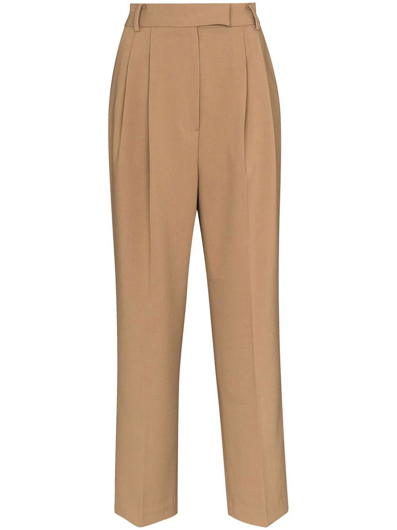 These brown Frankie Shop Bea pleated trousers have been crafted with a stretch composition. Featuring a high waist, this pair has side slash pockets, rear welt pockets, belt loops, rear buttoned welt pockets, a concealed hook and eye closure.