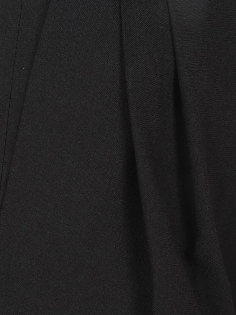 Black pleated belt loops button fastening slip pockets rear welt pockets.