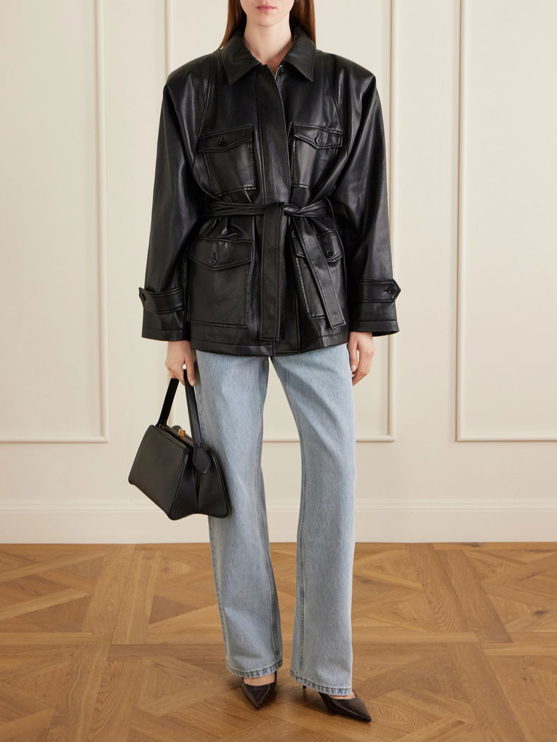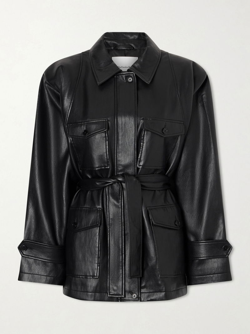 The Frankie Shop reimagines classic staples with bold proportions in the 'Kelia' jacket. Made from synthetic material, it has a relaxed fit defined by a tie belt, with padded raglan sleeves and buttoned utility flap pockets at the front. Layer it over casual or tailored looks for a modern touch.
